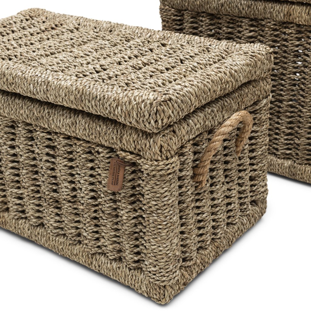 Sada Cardova Trunk se skládá ze dvou úložných košů, které jsou univerzálním řešením pro ukládání a stylovým konferenčním stolkem, když na ně umístíte elegantní podnos. Tkané akcenty dodávají košům přírodní a svěží vzhled.Doplňkové parametry