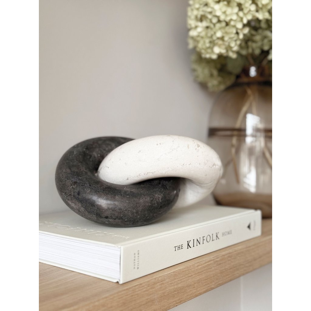 Dekorace Object Chain Round je elegantní designový kousek, který kombinuje jednoduchost formy s krásou přírodního kamene. Je vyrobena z mramoru a vyniká hladkým povrchem a jemným vzorem, díky kterému je každý kus jedinečný. Kruhové propojení článků symbolizuje harmonii a spojení, díky čemuž je tento objekt nejen dekorací, ale také výrazným uměleckým prvkem. Skvěle bude vypadat na konferenčním stolku, komodě nebo polici jako moderní akcent.Doplňkové parametry