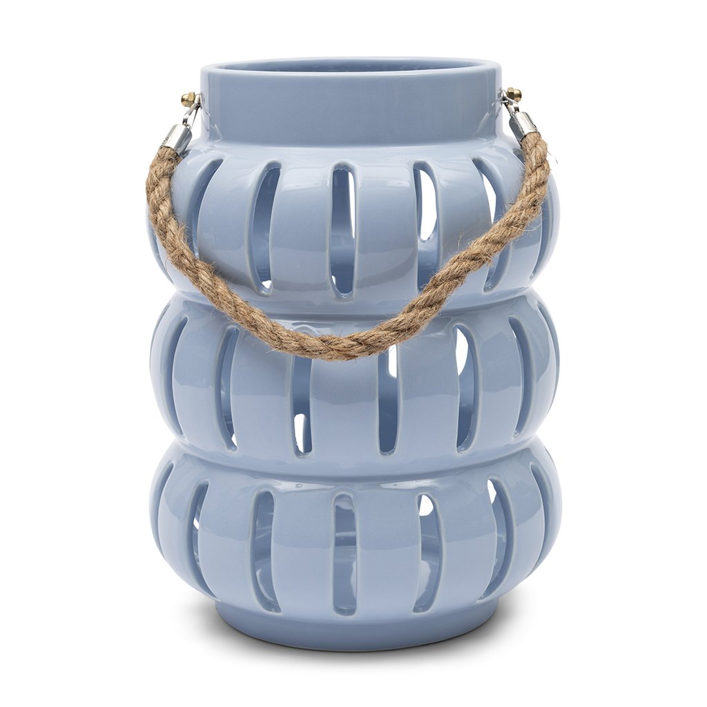Lucerna Éclat v modré barvě je letním doplňkem vašeho interiéru. Světle modrý odstín je ideální pro novou sezónu a vyzařuje osvěžující atmosféru. Je vyroben z keramiky s jemnou světle modrou povrchovou úpravou, doplněn provazovou rukojetí a hliníkovými akcenty.Doplňkové parametry
