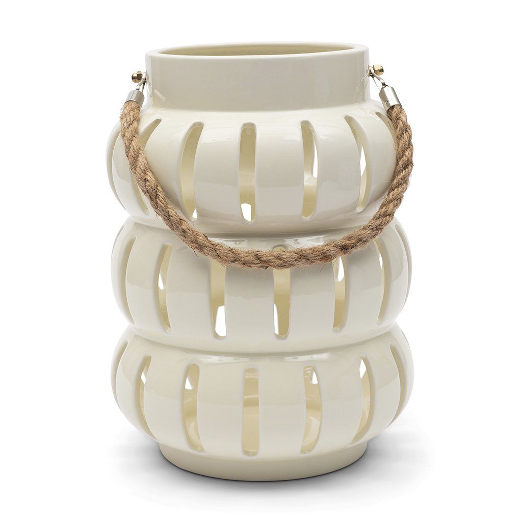 Okouzlující lucerna Éclat v bílé barvě dodá vašemu interiéru nevšední nádech. Je vyrobena z keramiky, obtažena jemnou krémovou barvou a doplněna provazem a hliníkovou rukojetí. Tato lucerna dodá vašemu interiéru svěží vzhled a jistě upoutá veškerou pozornost.