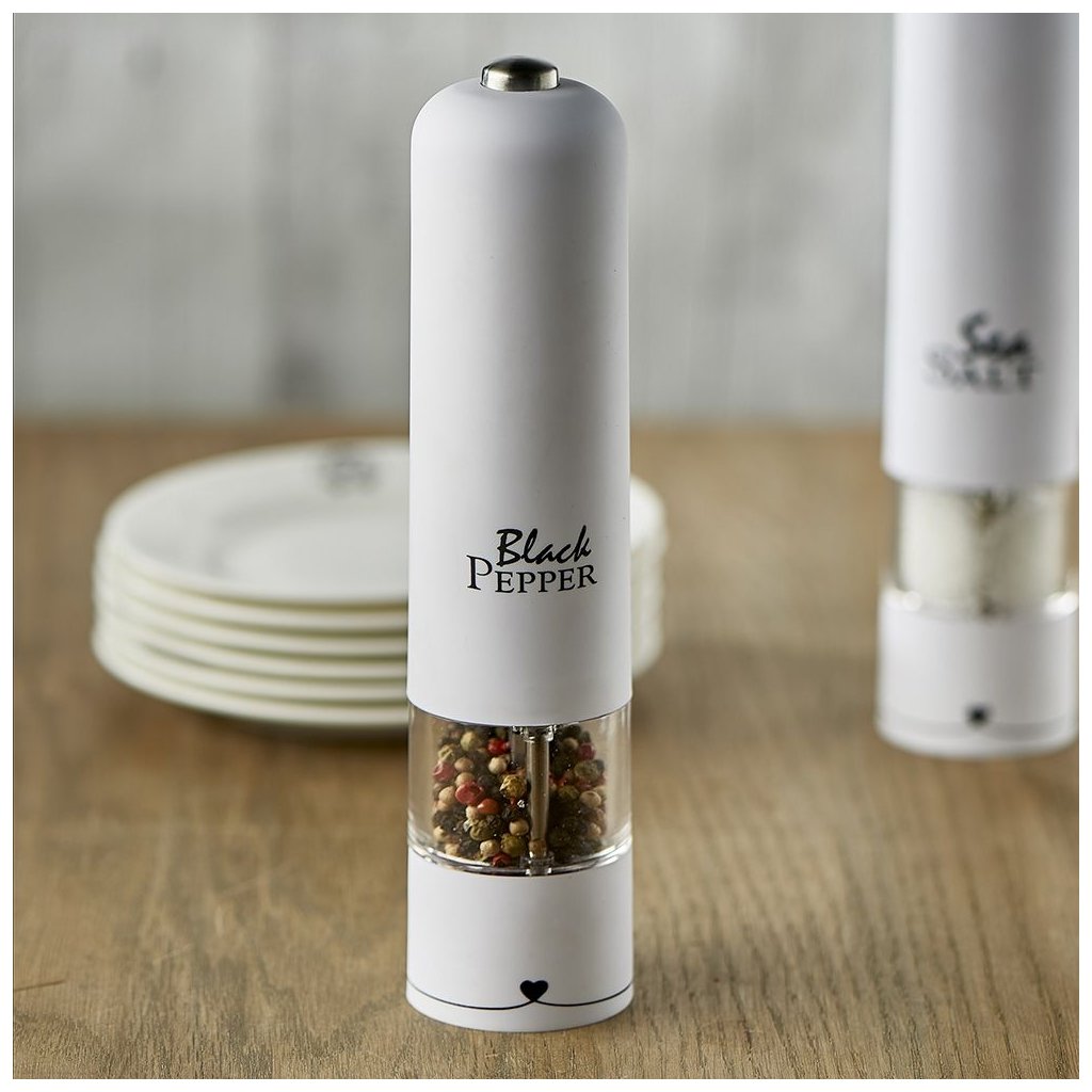 S tímto elektrickým mlýnkem na koření můžete stylově dochucovat své výtvory. Díky svému krásnému designu vypadá skvěle na každém stole. K dispozici je také odpovídající mlýnek na sůl. Mlýnek je napájen tužkovými bateriemi.Doplňkové parametry