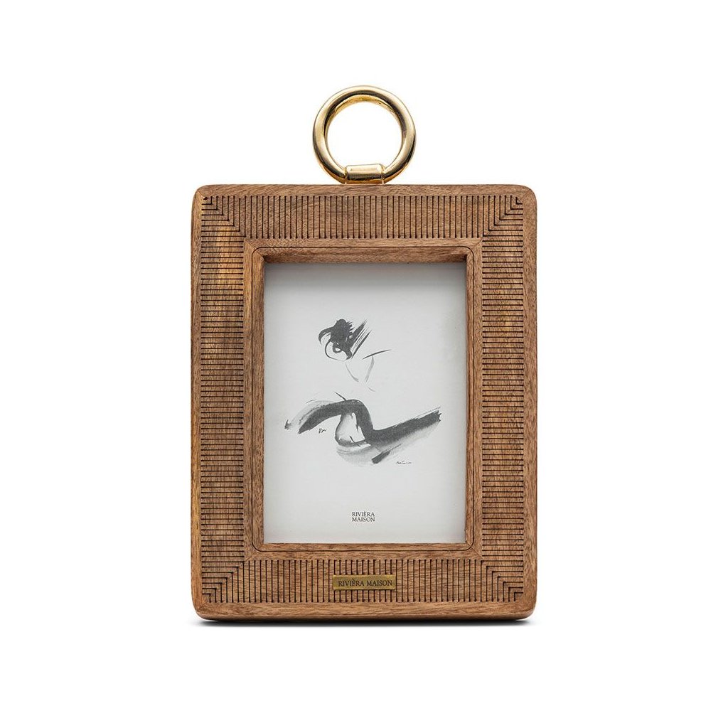 Co může být lepšího než dát svým drahocenným fotografiím pěkné místo k zavěšení, jako jsou fotobudky Makena? Rámeček je vyroben z mangového dřeva, které dostalo sofistikovanou povrchovou úpravu v podobě zaoblených rohů, vzoru vypálených pruhů a výrazného zlatého závěsného kroužku. Lze jej však samozřejmě také odložit. Rámeček je vhodný pro fotografii na šířku o rozměrech 20x15 cm.