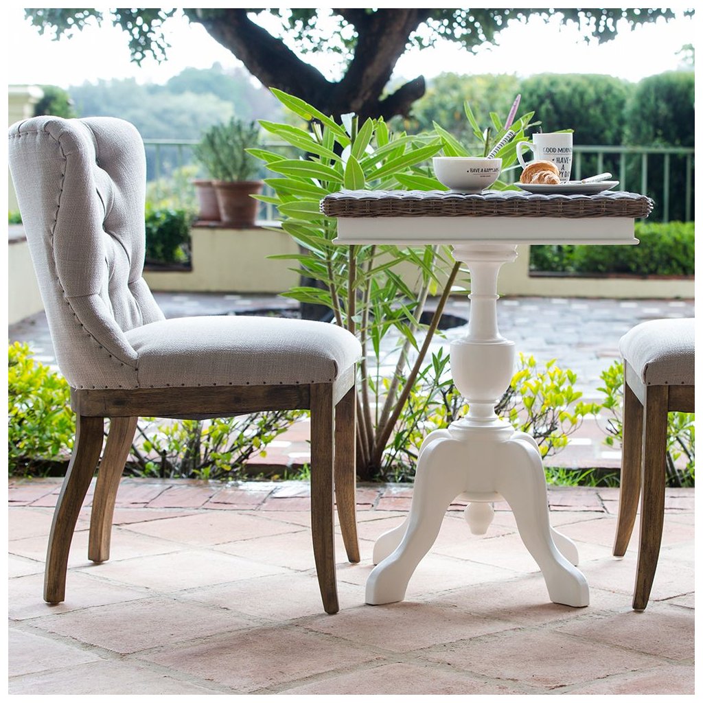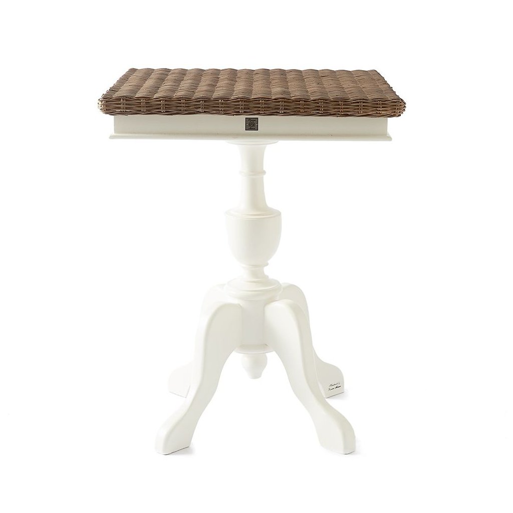 Stůl Grayson Bistro Table 60 x 60 cm má ratanovou desku a podstavec je z ručně malovaného akáciového dřeva.