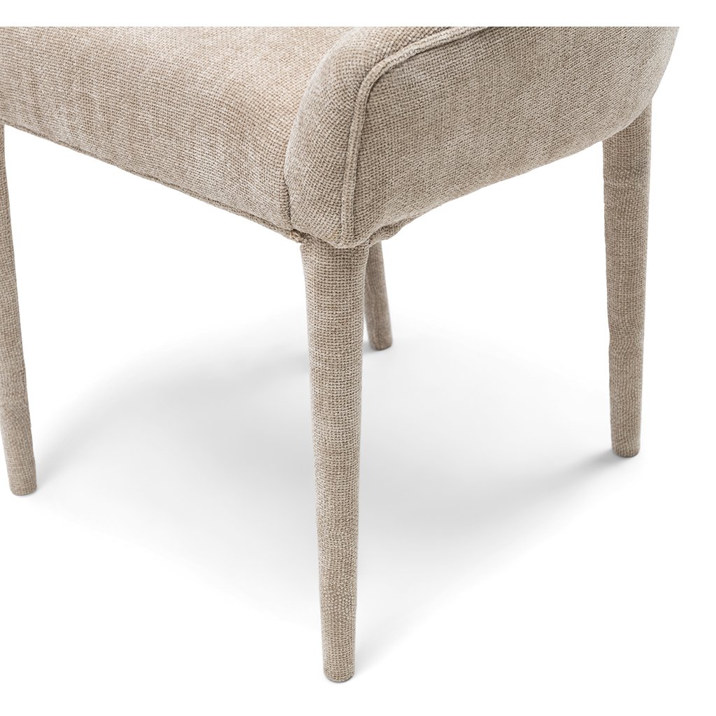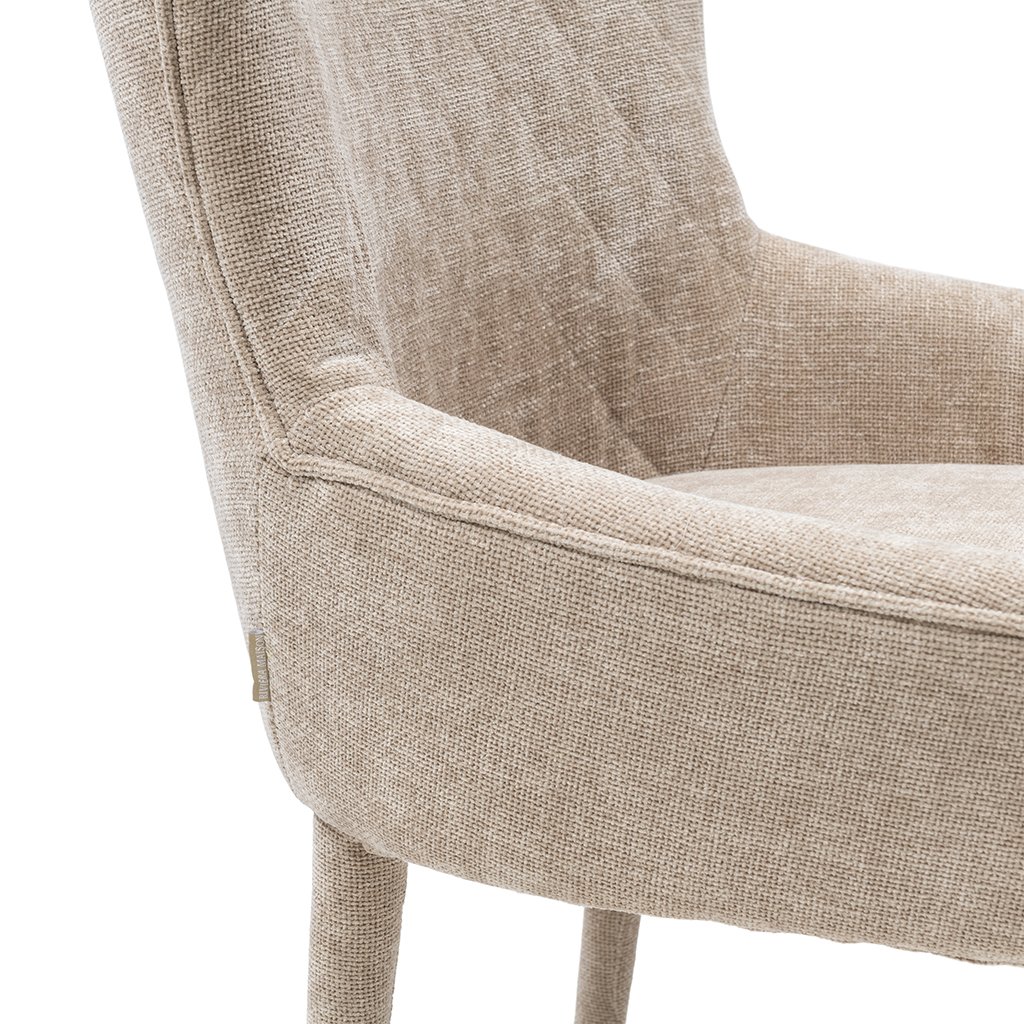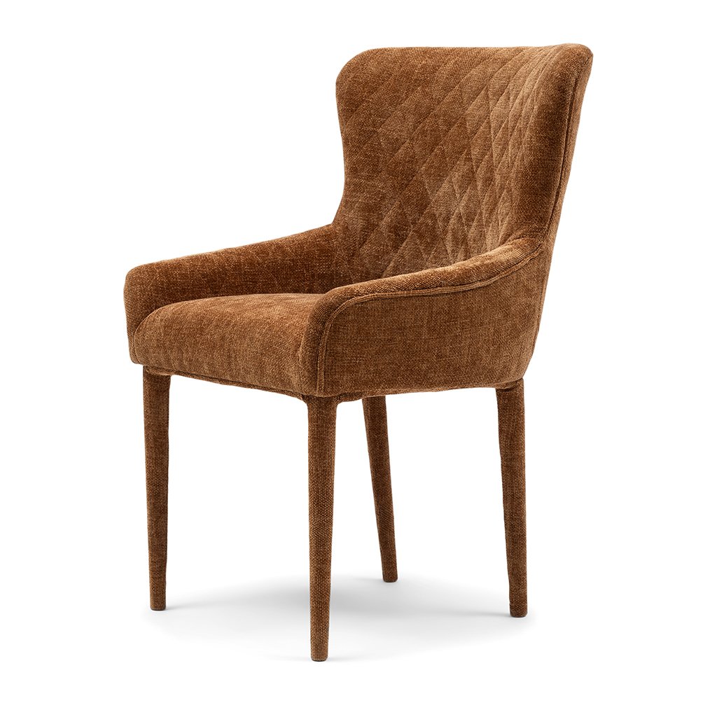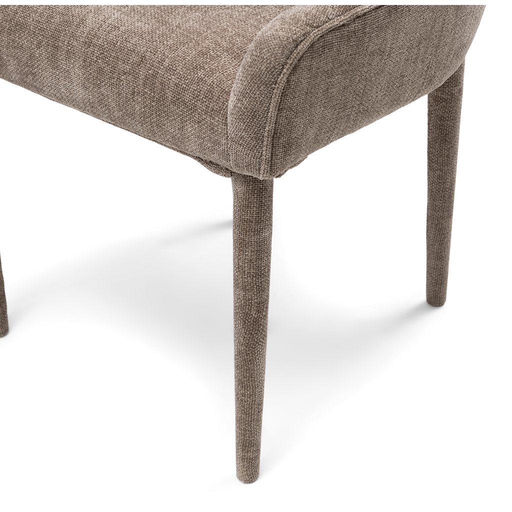Tato jídelní židle s područkami nabízí dokonalou rovnováhu mezi pohodlím a elegancí. Kombinované čalounění, které elegantně přiléhá k nohám, a kostkované prošívání přispívají k modernímu vzhledu. Hluboký sedák a vysoký opěrák zaručují maximální pohodlí při sezení. Díky svému modernímu designu se tato židle bez problémů hodí do různých stylů interiéru, takže se stane univerzálním a stylovým doplňkem vašeho jídelního prostoru.Doplňkové parametry