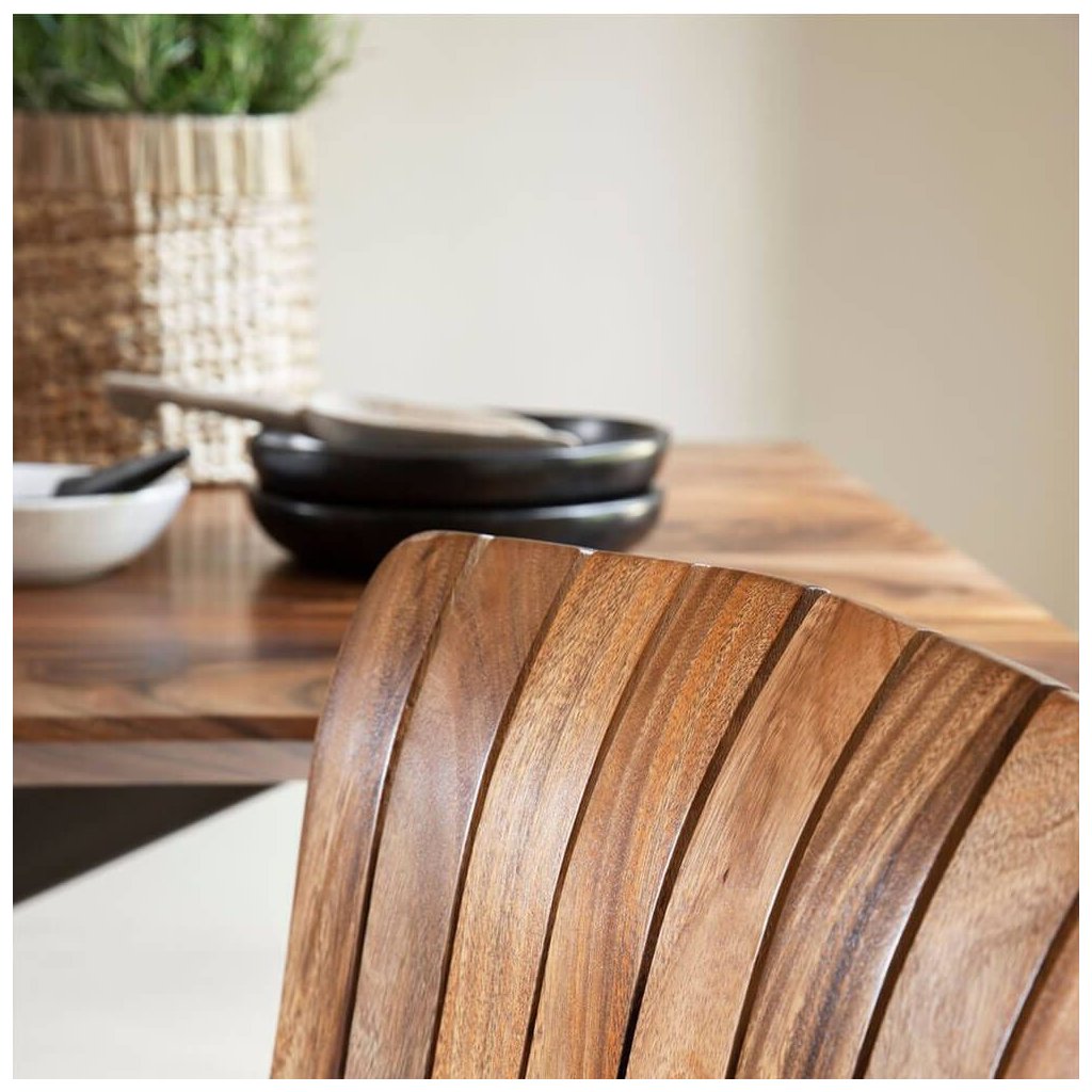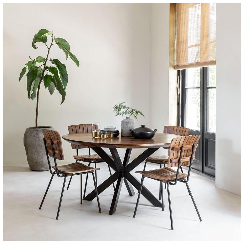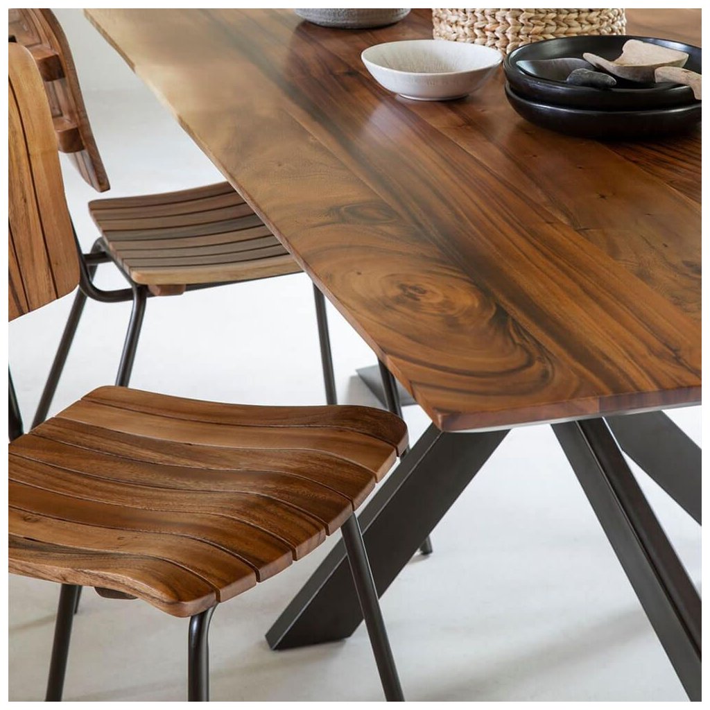 Základem naší kolekce Flare je masivní dřevo Suvar. Toto dřevo je výrazné, s odstíny světle žluté a tmavě čokoládové barvy, které připomínají plameny - odtud jeho název. Nábytek této kolekce je kombinován s černým železem se zlatavým leskem.