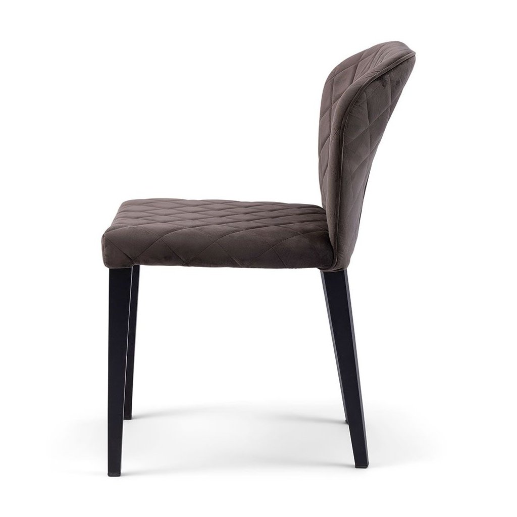 Jídelní židle Isabelle velmi dobře kombinuje moderní a pohodlné prvky. Měkký samet pro luxusní vzhled, mírně rovné opěradlo hranatého tvaru. Nohy židle jsou vyrobeny z černě smaltovaného kovu, moderního a robustního. Možnost výběru z různých barev.