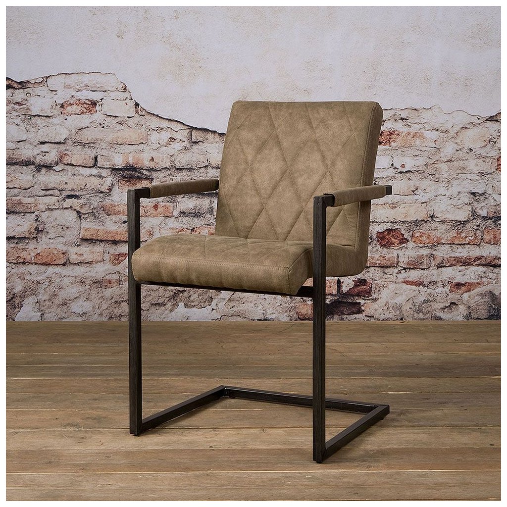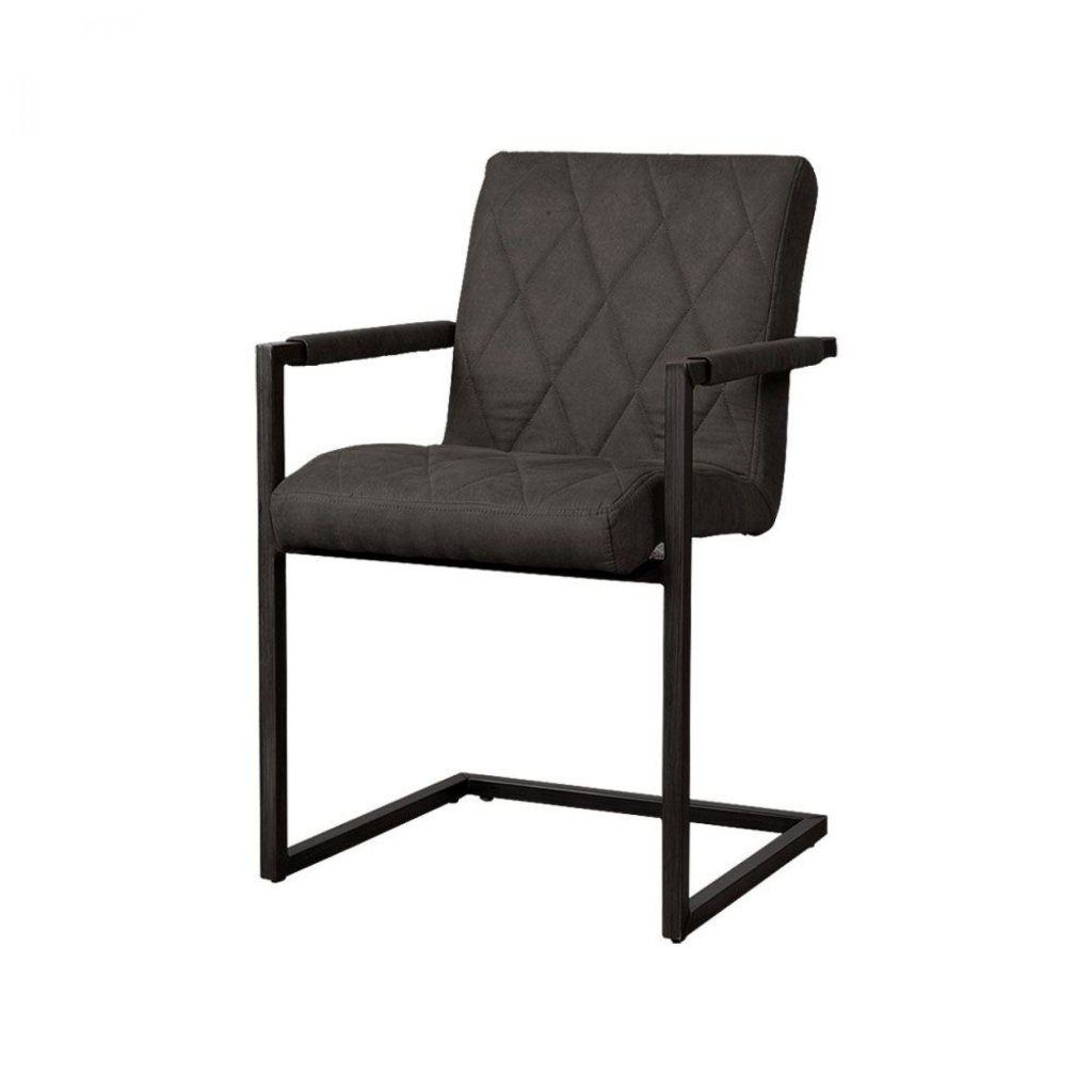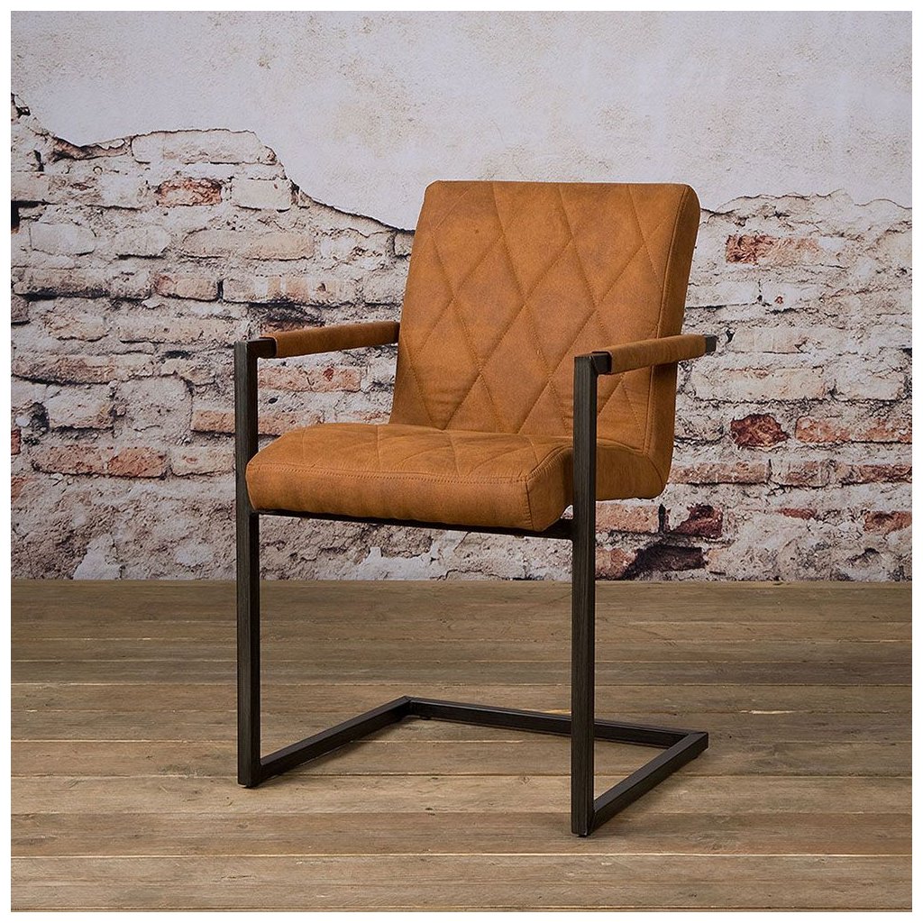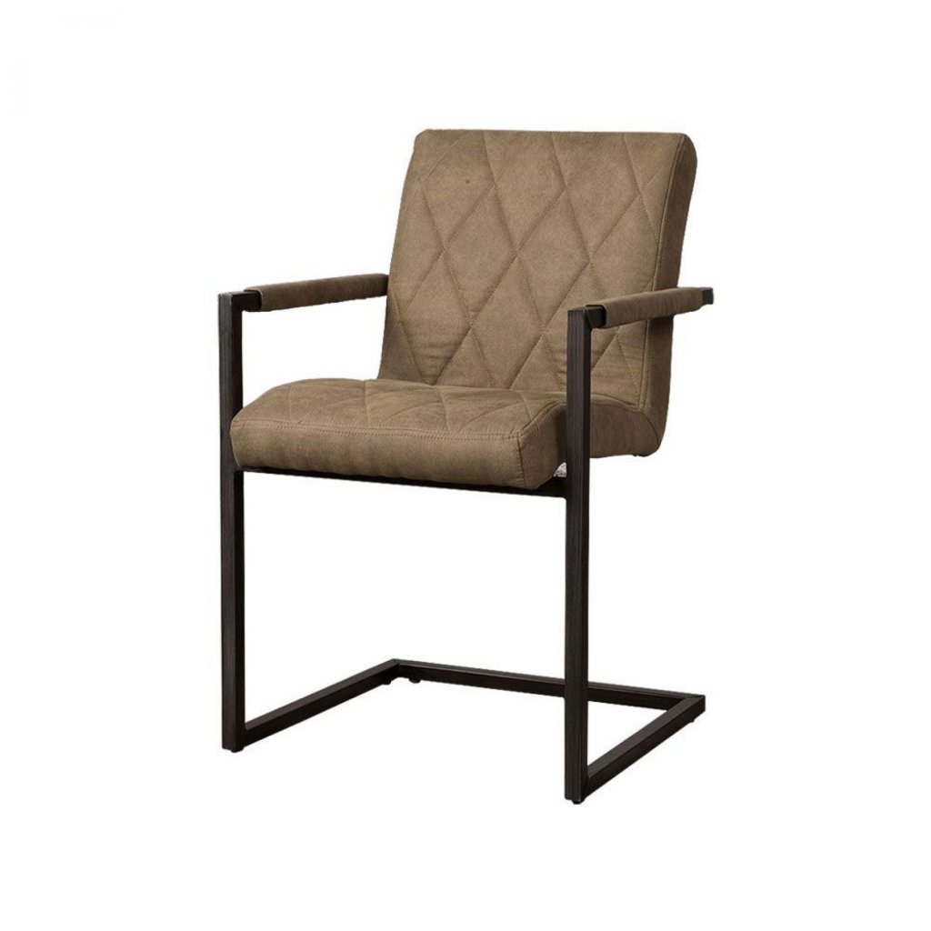 Elegantní jídelní židle s područkami na pevném kovovém rámu s prošívaným látkovým čalouněním. Výška područek je 65 cm, což znamená, že židli lze pohodlně zasunout pod většinu jídelních stolů. K dispozici v několika barevných variantách.