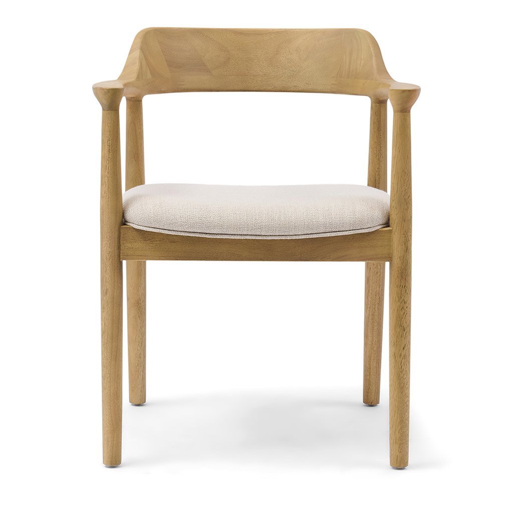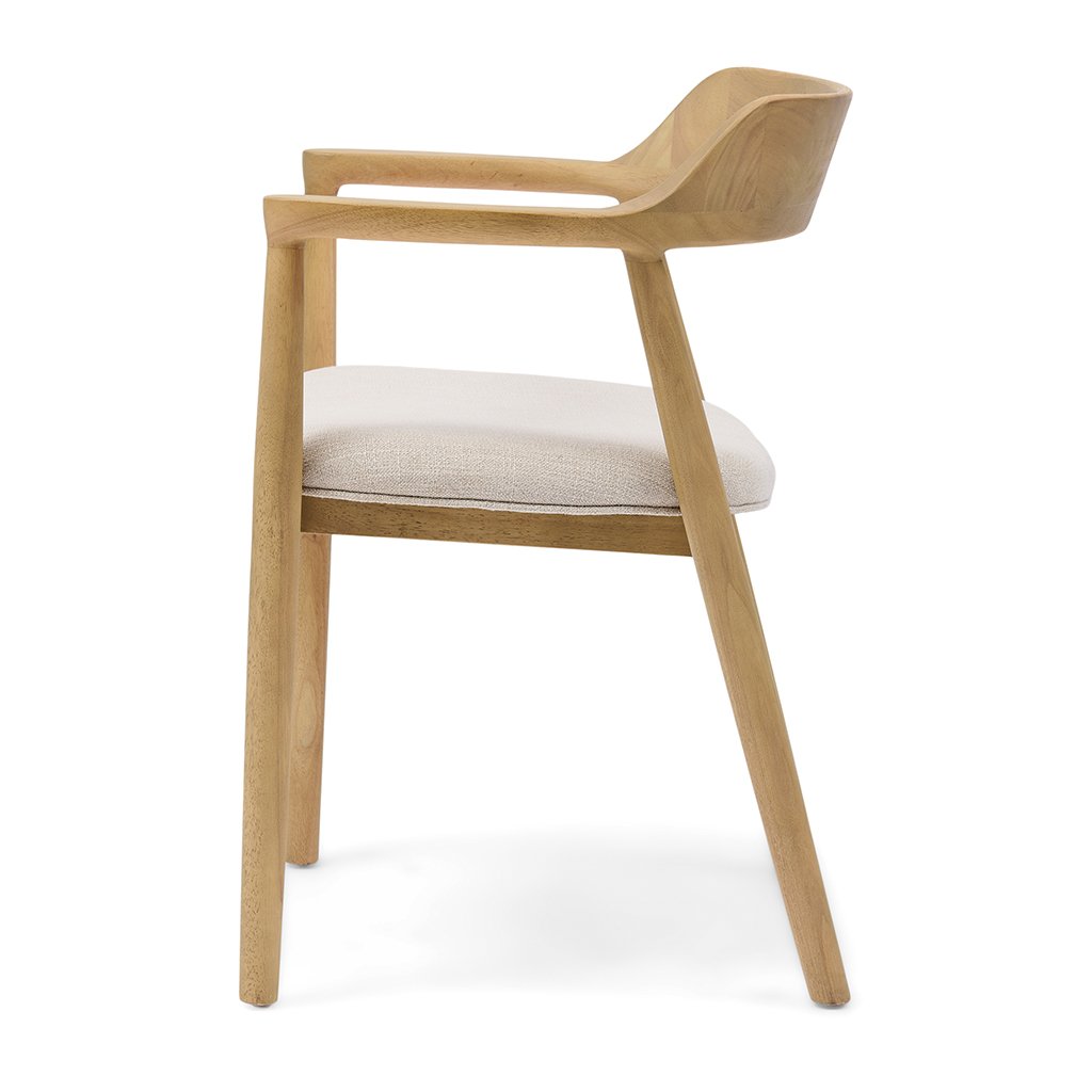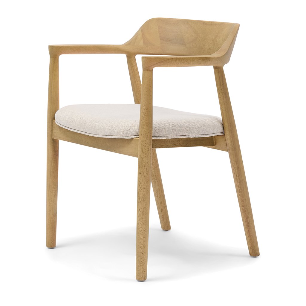 Jídelní židle Puglia s područkami je elegantní židle ve skandinávském stylu. Dřevěný rám s opěradlem a područkou zajišťuje stabilitu, zatímco bílý polštář poskytuje dodatečné pohodlí. Moderní a nadčasový design dělá z této židle sofistikovaný doplněk vaší jídelny, který se skvěle hodí pro večeře i společenská setkání.Doplňkové parametry