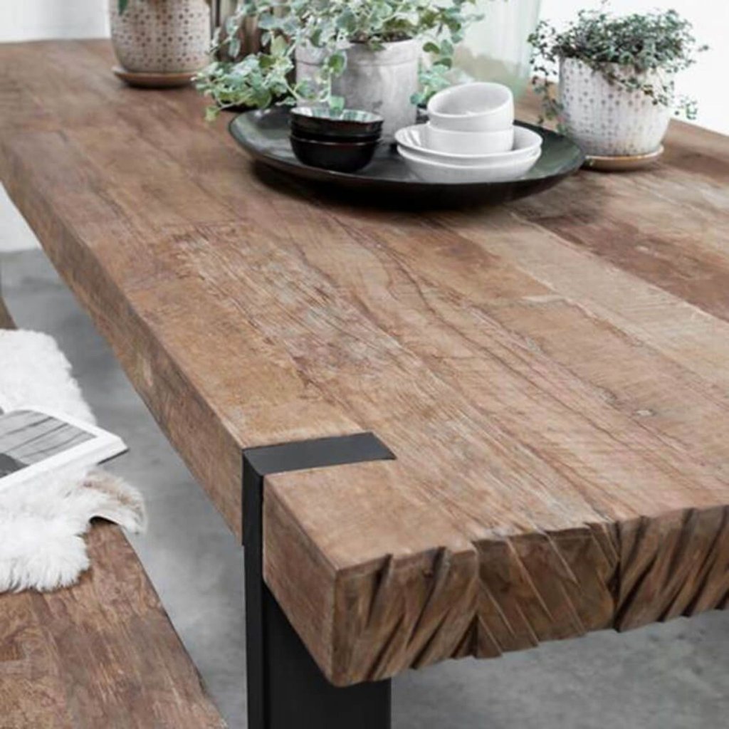Naše kolekce Timeless je skutečně nadčasová. Najdete v ní výrobky hladkých a drobných tvarů, stejně jako robustní a masivní kousky. Obě varianty využívají krásné recyklované teakové dřevo v kombinaci s industriálními kovovými prvky. Tloušťka desky je 8 cm! Nabízeno ve více velikostech.