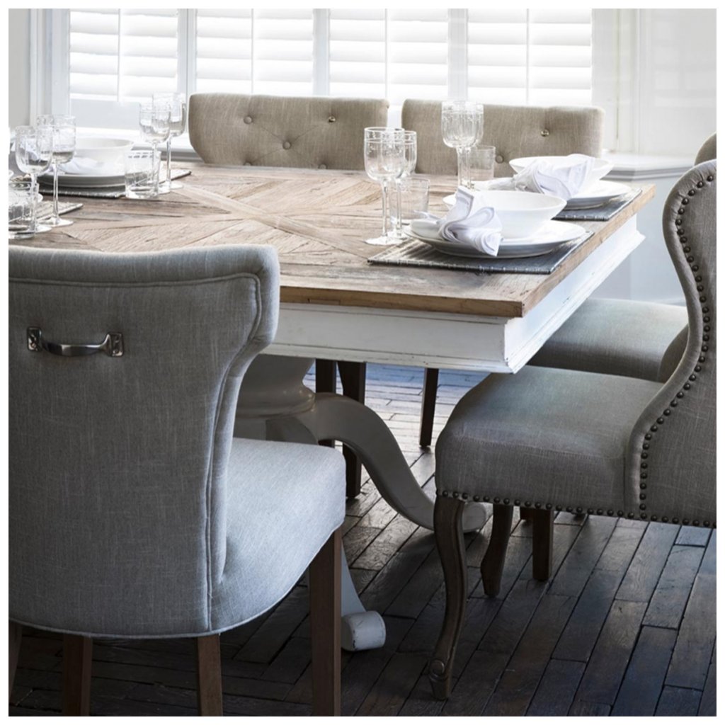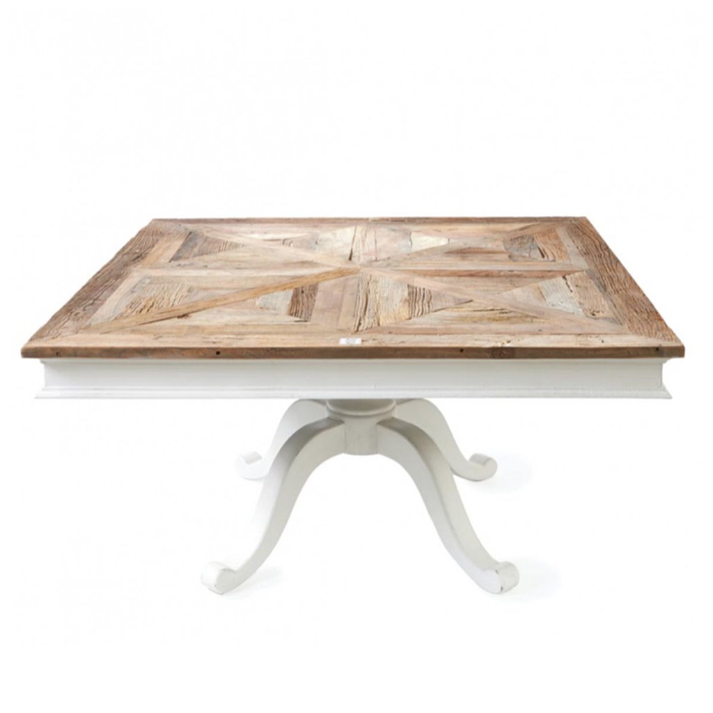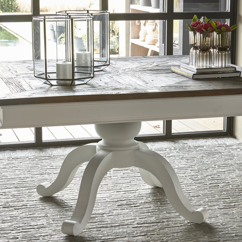 Desky stolů z kolekce Chateau Belvedere jsou inspirovány podlahami starých zámků. Nejmenší velikost stolu je ideální pro koutek "jen pro nás dva", zatímco dva dohromady tvoří skvělý jídelní stůl. K dostání v různých velikostech.