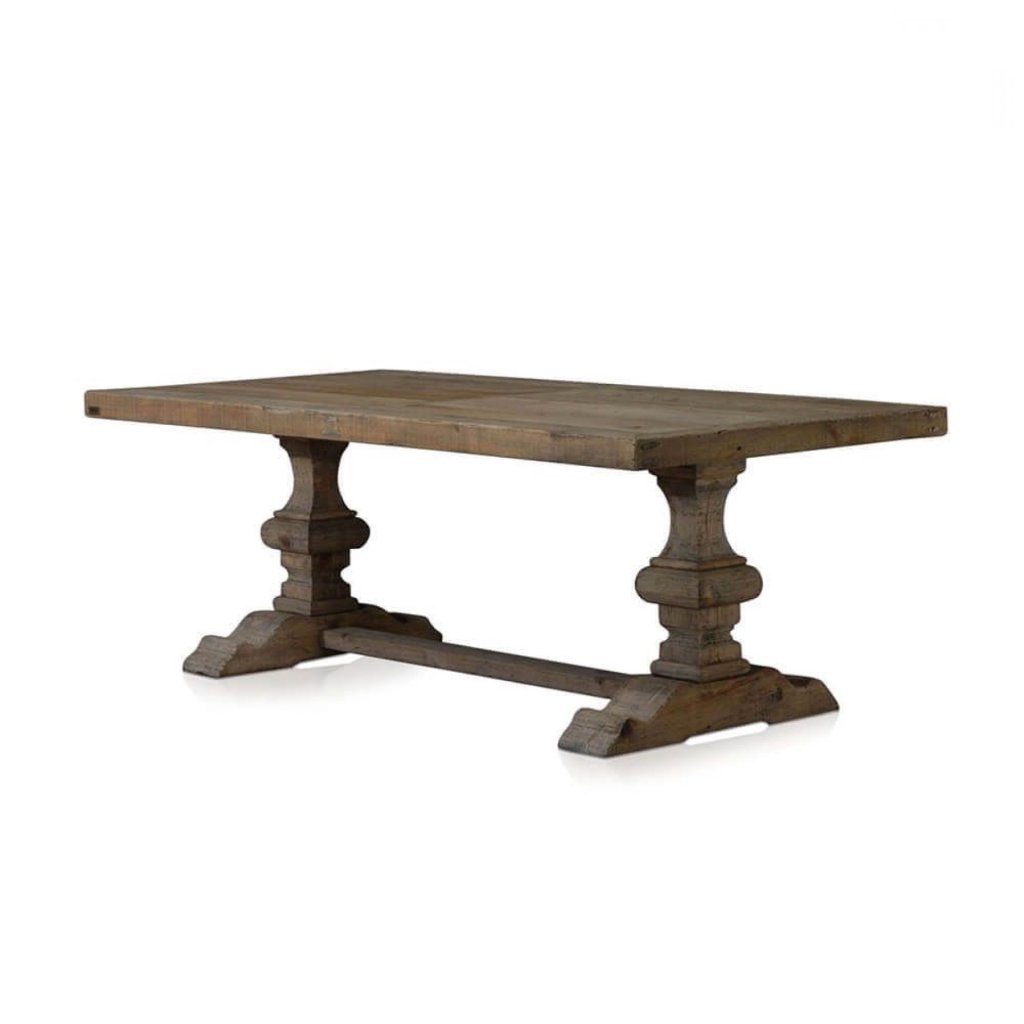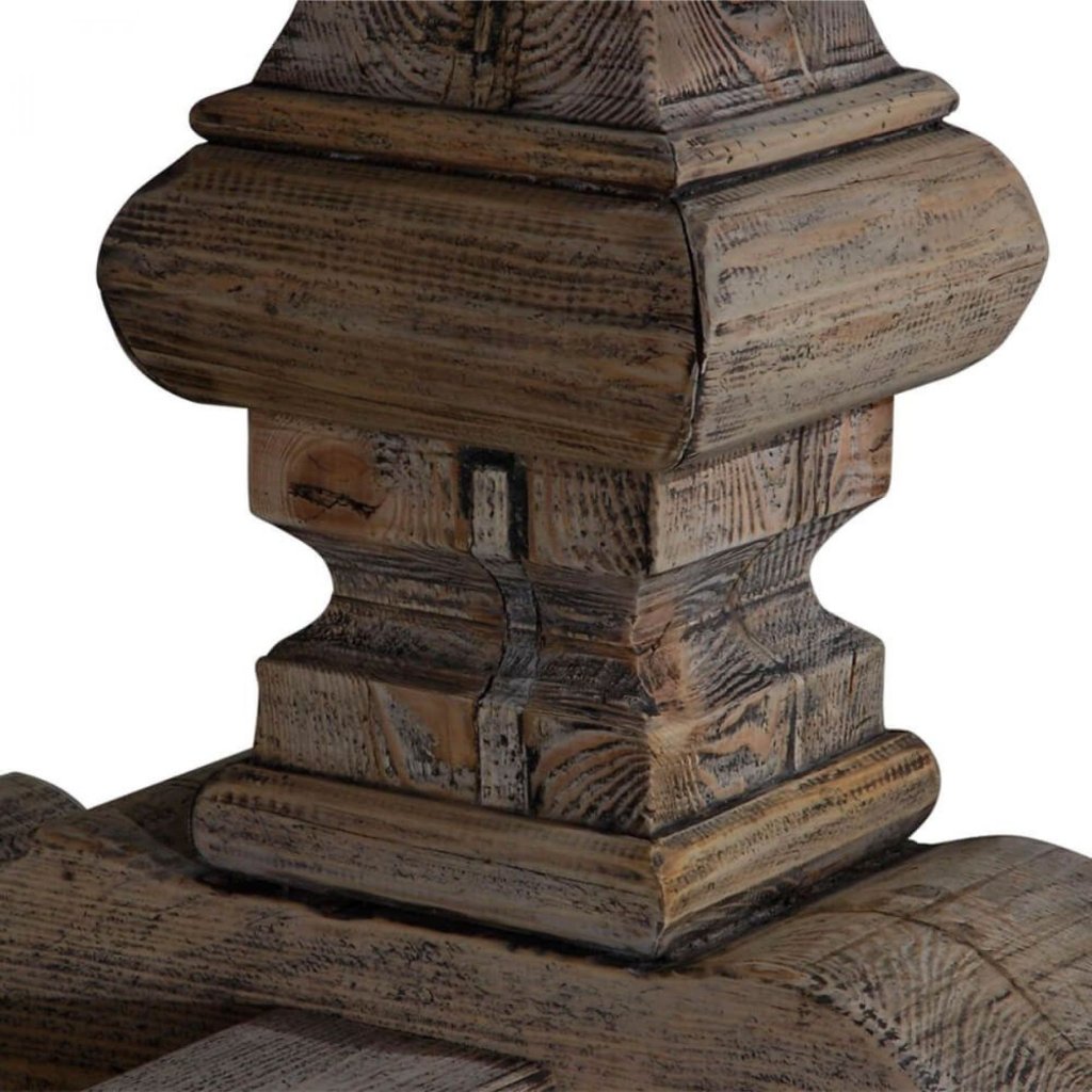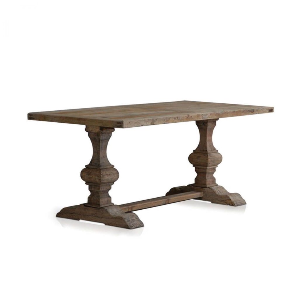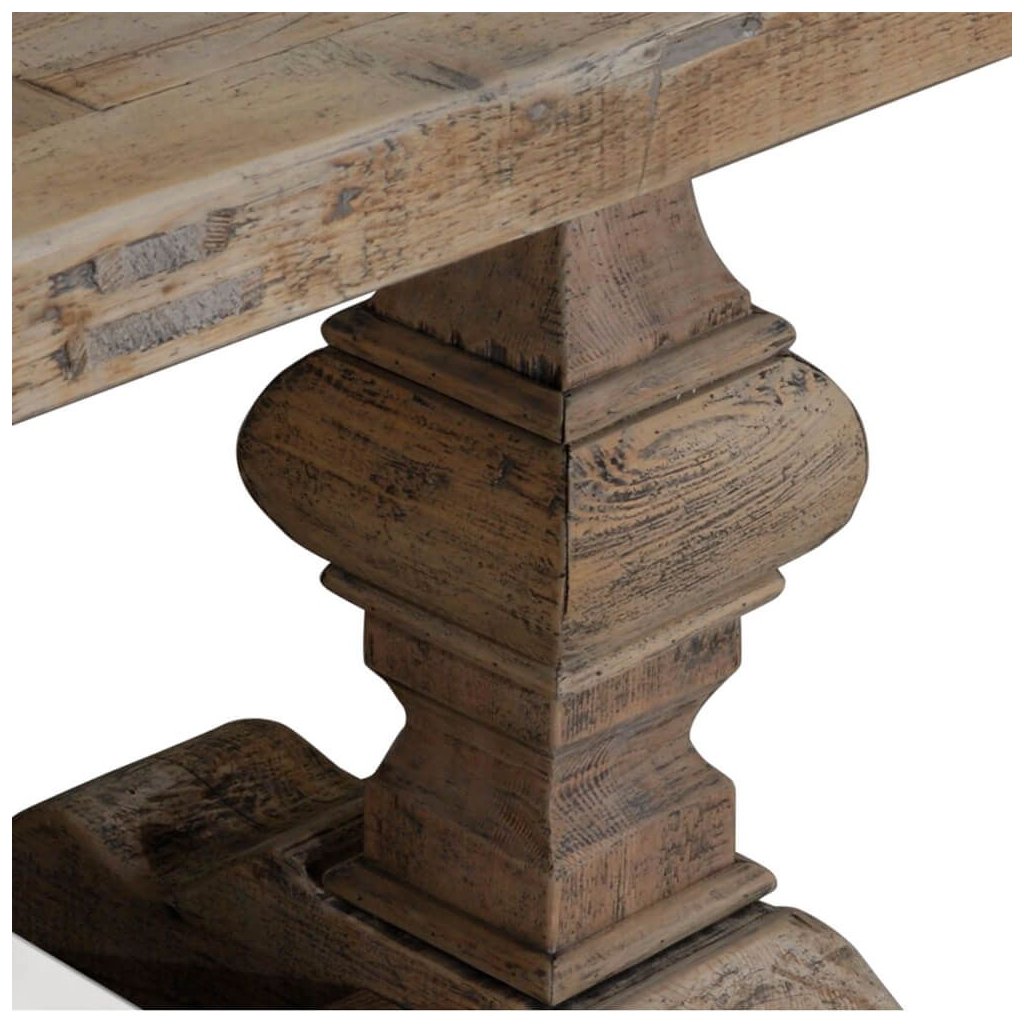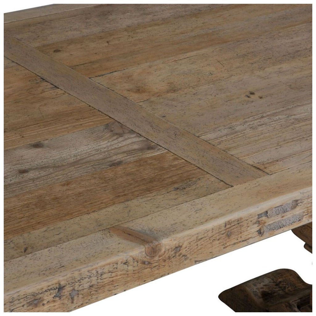 Povrch stolu není nijak ošetřen. Před prvním použitím doporučujeme desku stolu ošetřit přípravkem Natural Woodsealer ®, který poskytujeme zdarma. Tento impregnační olej na vodní bázi poskytuje ochranu, ale téměř nemění původní vzhled. Desku stolu lze samozřejmě ponechat v původním stavu. Veškeré použité dřevo je regenerované dřevo z dveří a konstrukčních trámů starých budov. Proto jsou možné odchylky v kresbě a barvě dřeva. Kromě toho může dřevo obsahovat přirozené drobné praskliny. Deska stolu má takzvanou obálkovou konstrukci. Častým důsledkem této konstrukce je malý otvor mezi středovou deskou a bočními trámy. Tento otvor se může zvětšit, pokud je okolní vlhkost příliš nízká.