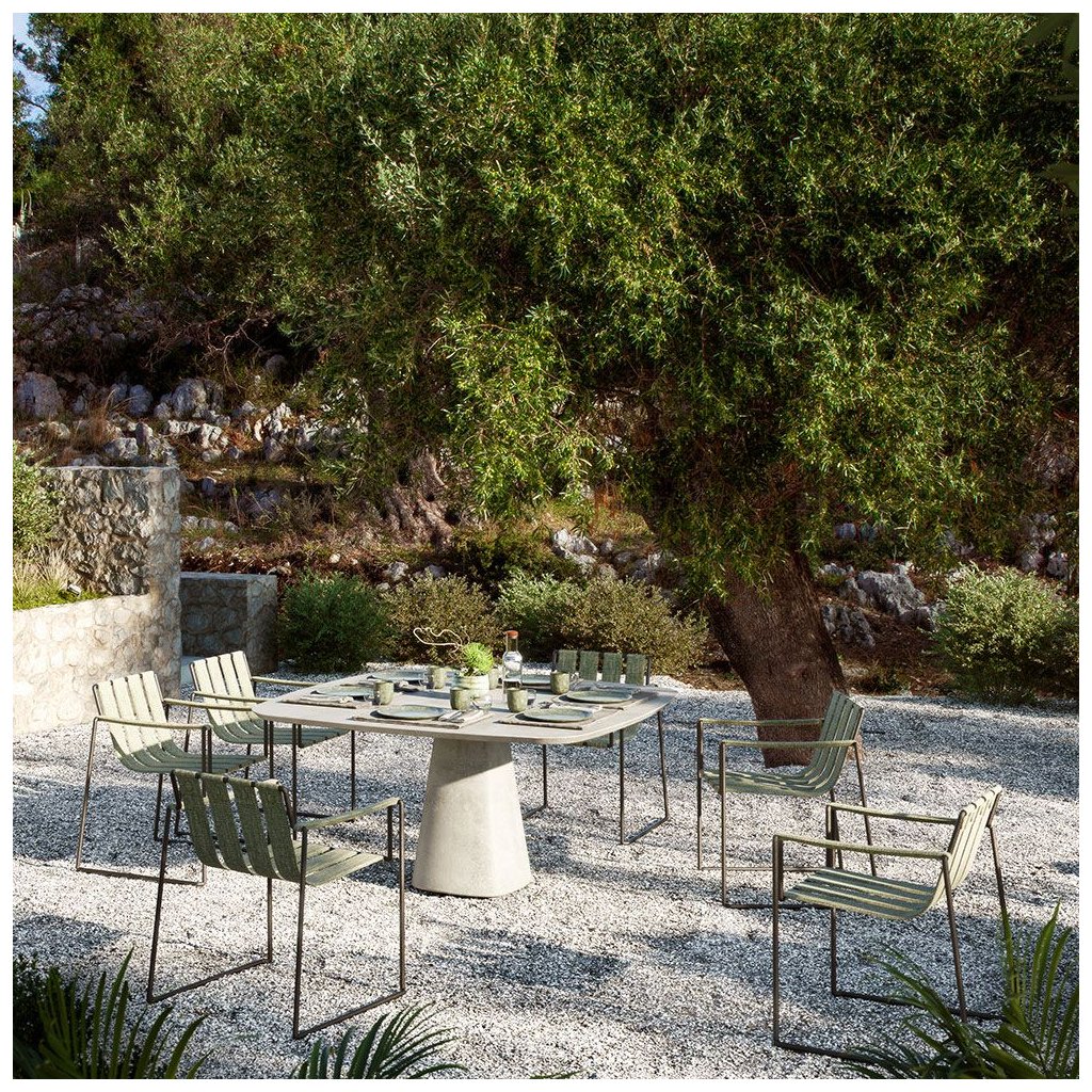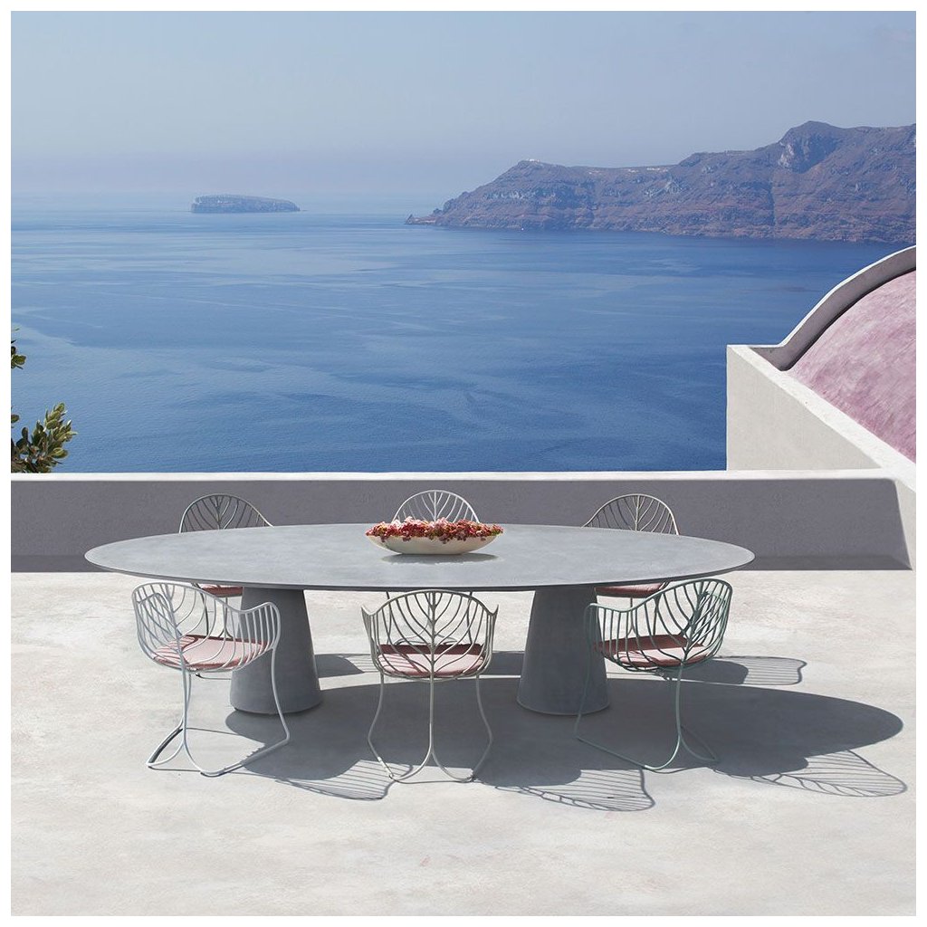 Název této kolekce zahradních stolů odkazuje na kónický tvar betonové podnože. Ty jsou odlity z betonu Ductal®, vyztuženého vlákny. Povrch betonu je leštěný a upravený tak, aby byl méně porézní.
