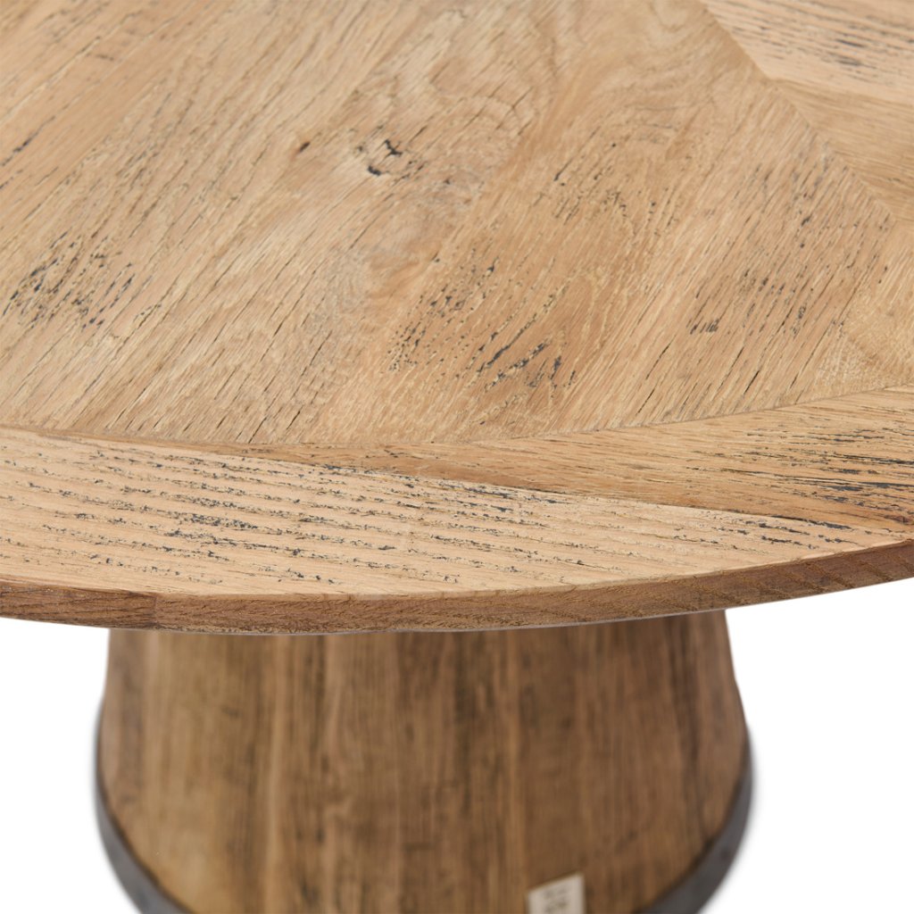 S tímto jídelním stolem Siroko Beach bude společné stolování ještě útulnější. Tento kulatý stůl je vyroben z recyklovaného dubového dřeva. Má ručně vykládanou desku připomínající klasickou zámeckou podlahu v kombinaci s elegantními kuželovitými nohami. Tip: Chcete-li o tento stůl pečovat, máme v naší kolekci sadu RM Wood Care.Doplňkové parametry