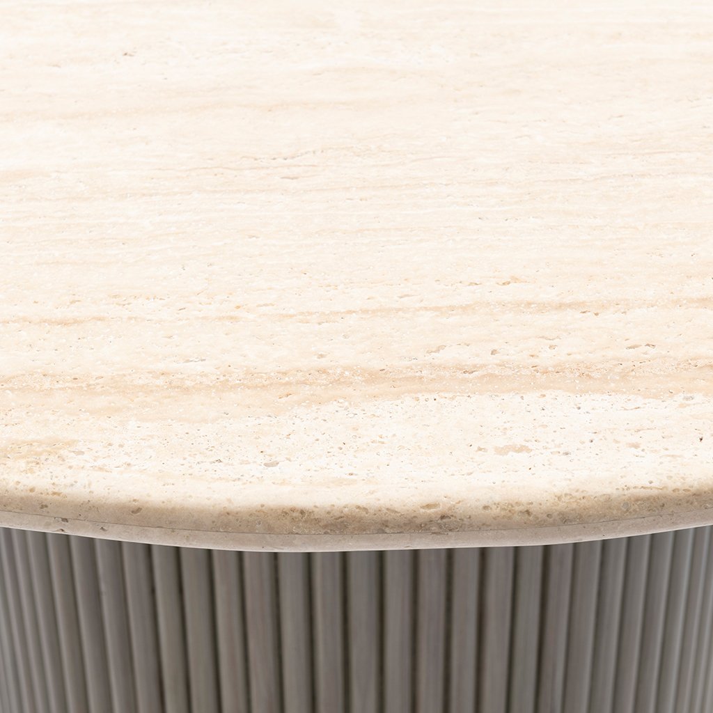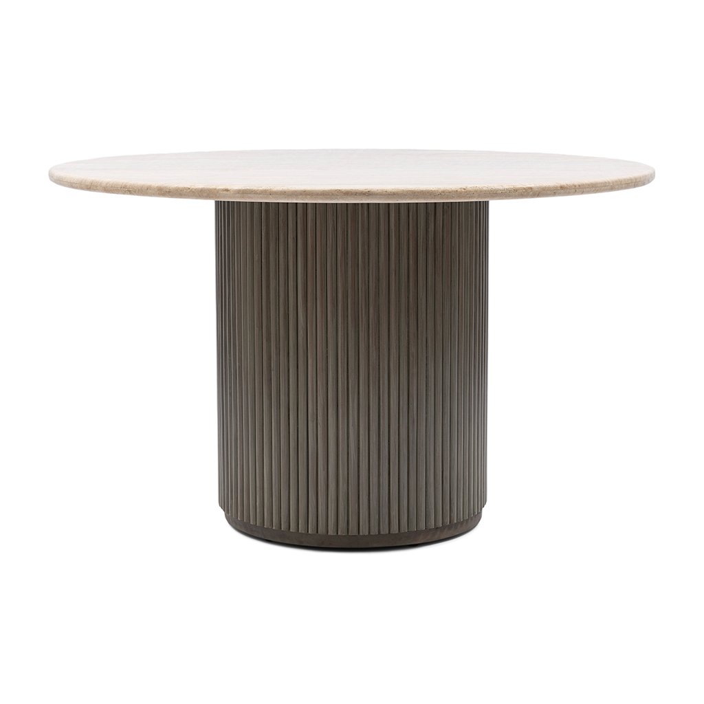 Tento kulatý jídelní stůl v přírodních tónech má rafinovanou travertinovou desku, která dodává každému stolu jedinečný charakter. Široká podnož s proužky mangového dřeva dodává stolu elegantní a hřejivý vzhled. Tento stůl vytvoří příjemnou atmosféru a stane se ústředním bodem vaší jídelny nebo jídelního koutu. Skvěle se hodí pro pohoštění hostů nebo pro útulné rodinné stolování.Doplňkové parametry