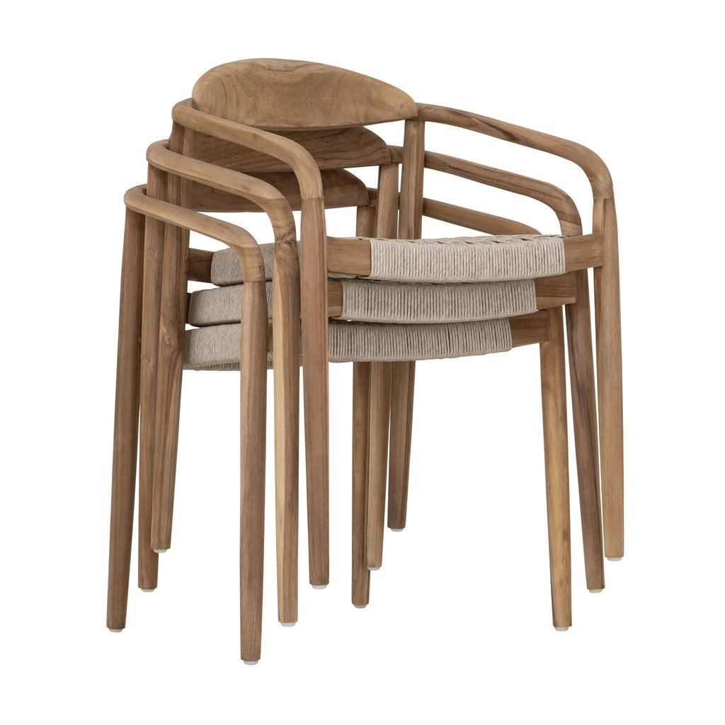 Jídelní židle Santiago spojuje přírodní teakové dřevo s lehkým, vzdušným výpletem z odolného rope materiálu. Díky tomu působí elegantně, přirozeně a zároveň nabízí pohodlné sezení při každodenním stolování. Jemné linie a důraz na detail z ní dělají nadčasový kousek, který se snadno kombinuje s různými typy jídelních stolů – v interiéru i exteriéru.