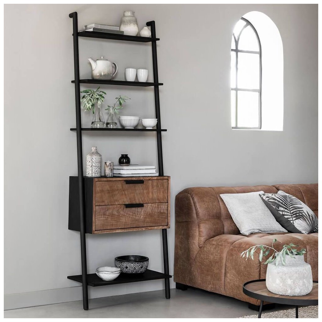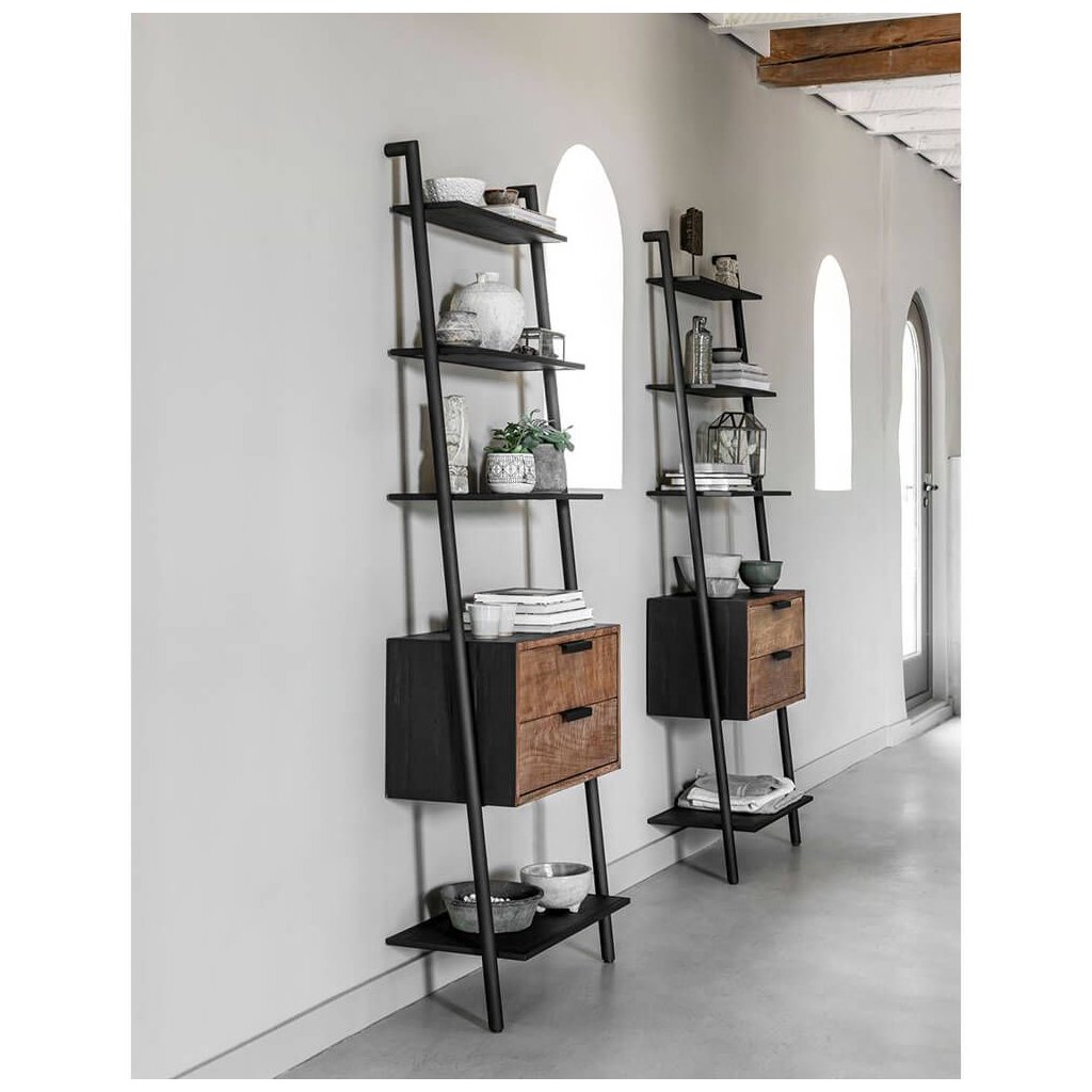 Nástěnná knihovna Cosmo Rack kombinuje přírodní a černé recyklované teakové dřevo a vytváří tak výraznou kombinaci.Kolekce Cosmo se vyznačuje kombinací teakového dřeva v přírodní a černé barvě. Kontrasty umocňuje hladký kov rámu a dvířek zdobených jemnými úchytkami.