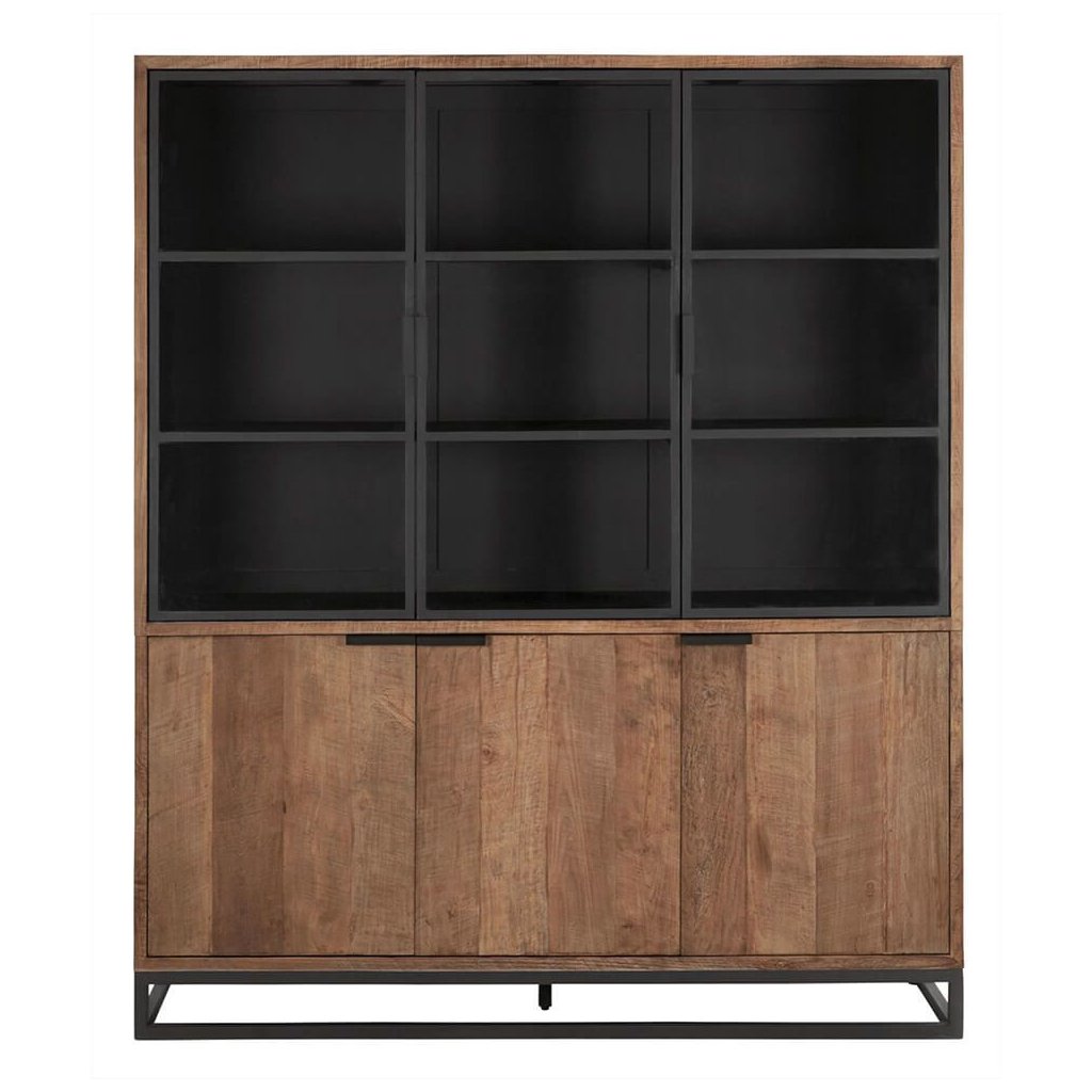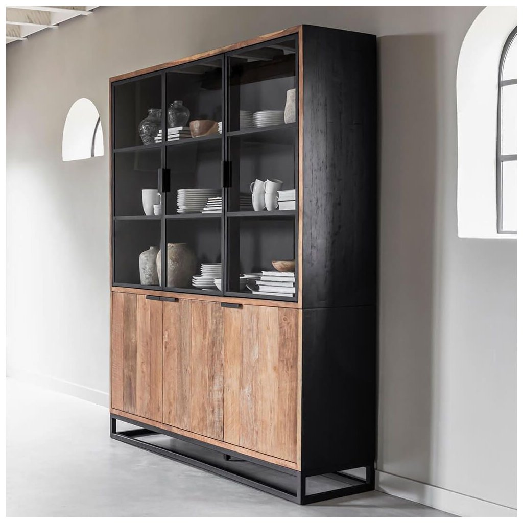 Knihovna Cosmo Showcase Medium kombinuje přírodní a černé recyklované teakové dřevo s kovovým rámem a vytváří tak výraznou a zajímavou industriální kombinaci.Rozměry vitríny jsou 215x180x45 cm se 3 skleněnými a 3 dřevěnými dveřmi.