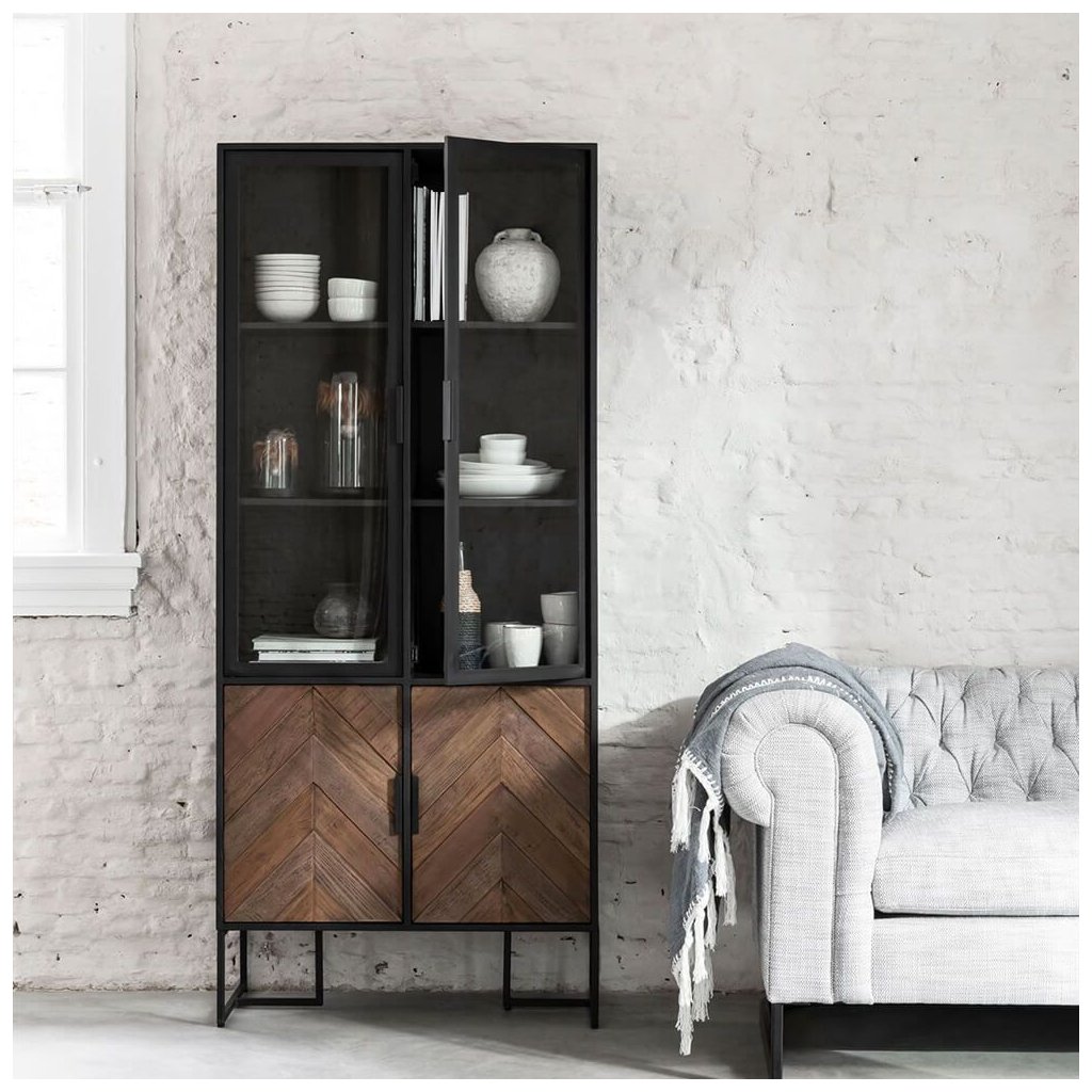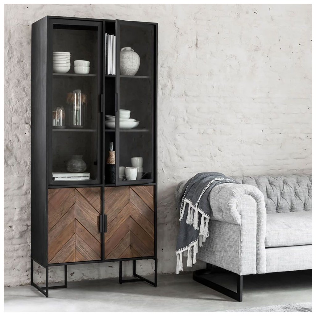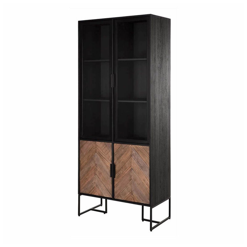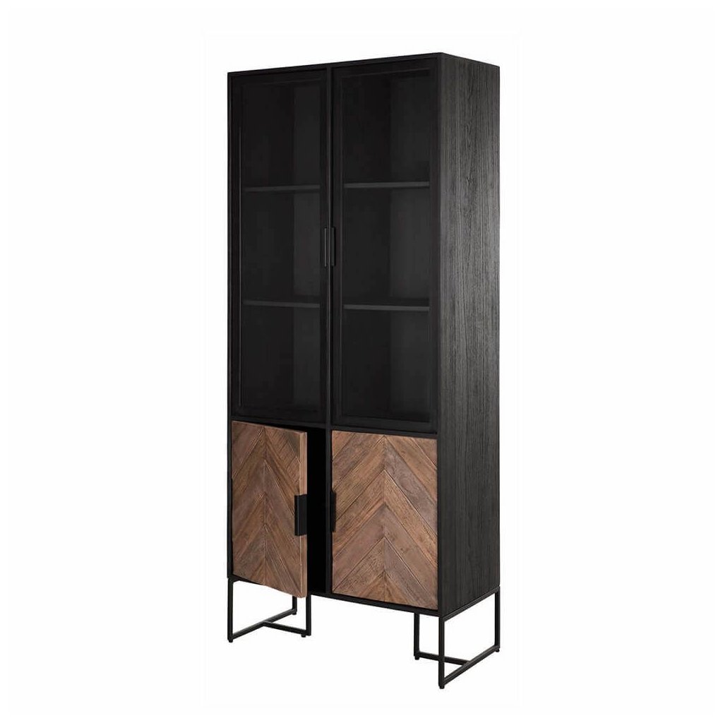 Pokud hledáte něco výjimečného, je pro vás ideální naše kolekce Criss Cross. Tato knihovna je vyrobena z kombinace smíšeného dřeva a oceli a má vzor rybí kosti. Knihovna Criss Cross má 2 skleněná a 2 kovová dvířka a měří 185x80x40 cm.Nová řada výrazného nábytku s chevronovým vzorem z recyklovaného teakového dřeva. Kombinace šikmých pruhů a rovných linií je italskou podlahovou klasikou. Používá se na deskách stolů a dvířkách skříní, je hravý, atraktivní a elegantní. Jedná se o kolekci Criss Cross.