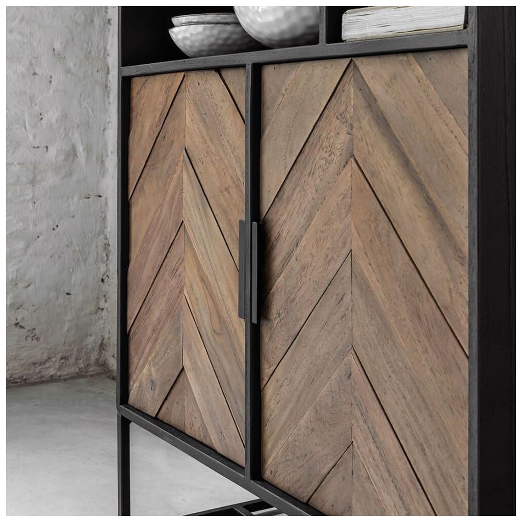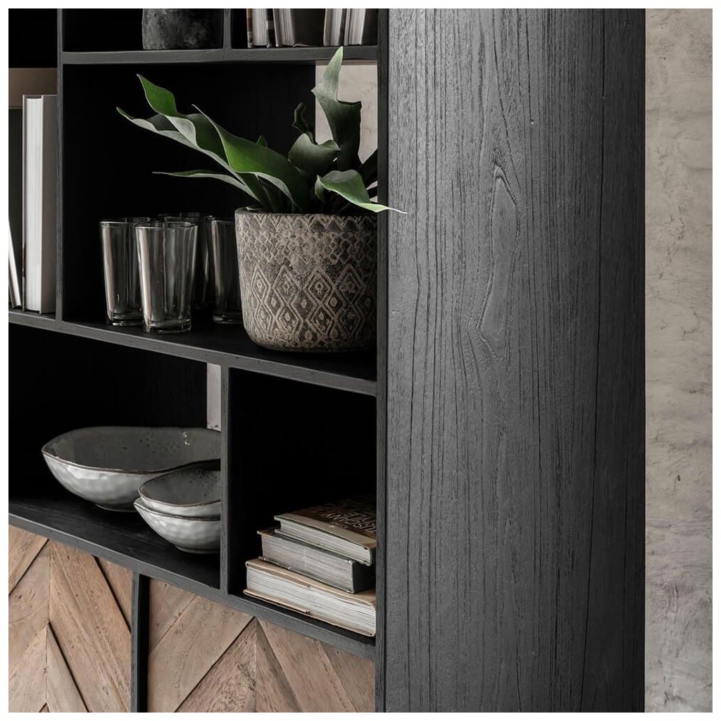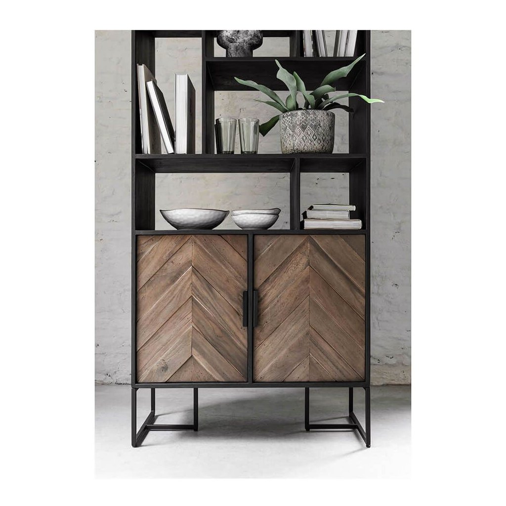Pokud hledáte něco výjimečného, je pro vás ideální naše kolekce Criss Cross. Tato knihovna je vyrobena z kombinace smíšeného dřeva a oceli a má vzor rybí kosti. Knihovna Criss Cross má 2 dvířka a 7 otevřených polic a měří 185x80x40 cm.Nová řada výrazného nábytku s chevronovým vzorem z recyklovaného teakového dřeva. Kombinace šikmých pruhů a rovných linií je italskou podlahovou klasikou. Používá se na deskách stolů a dvířkách skříní, je hravý, atraktivní a elegantní. Jedná se o kolekci Criss Cross.