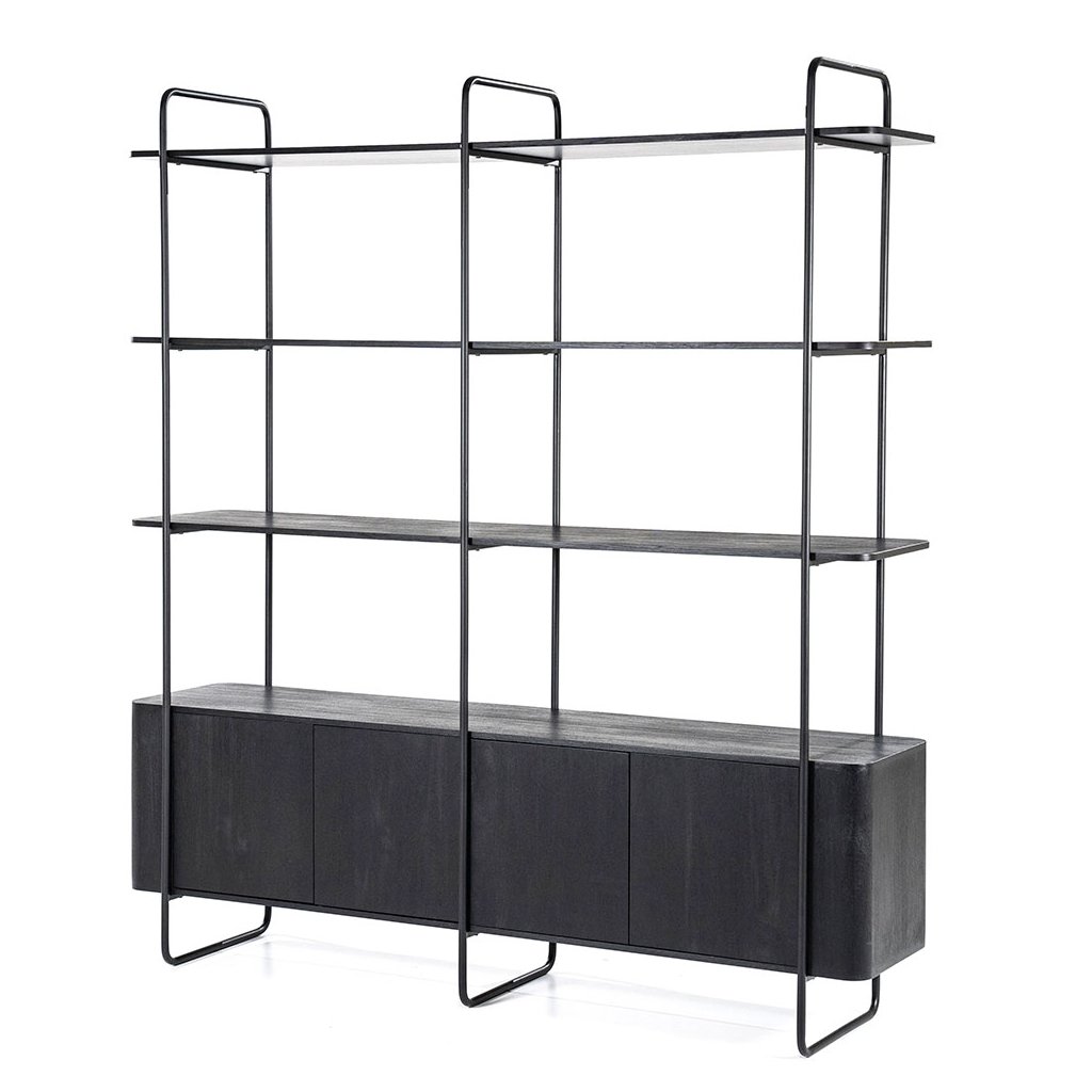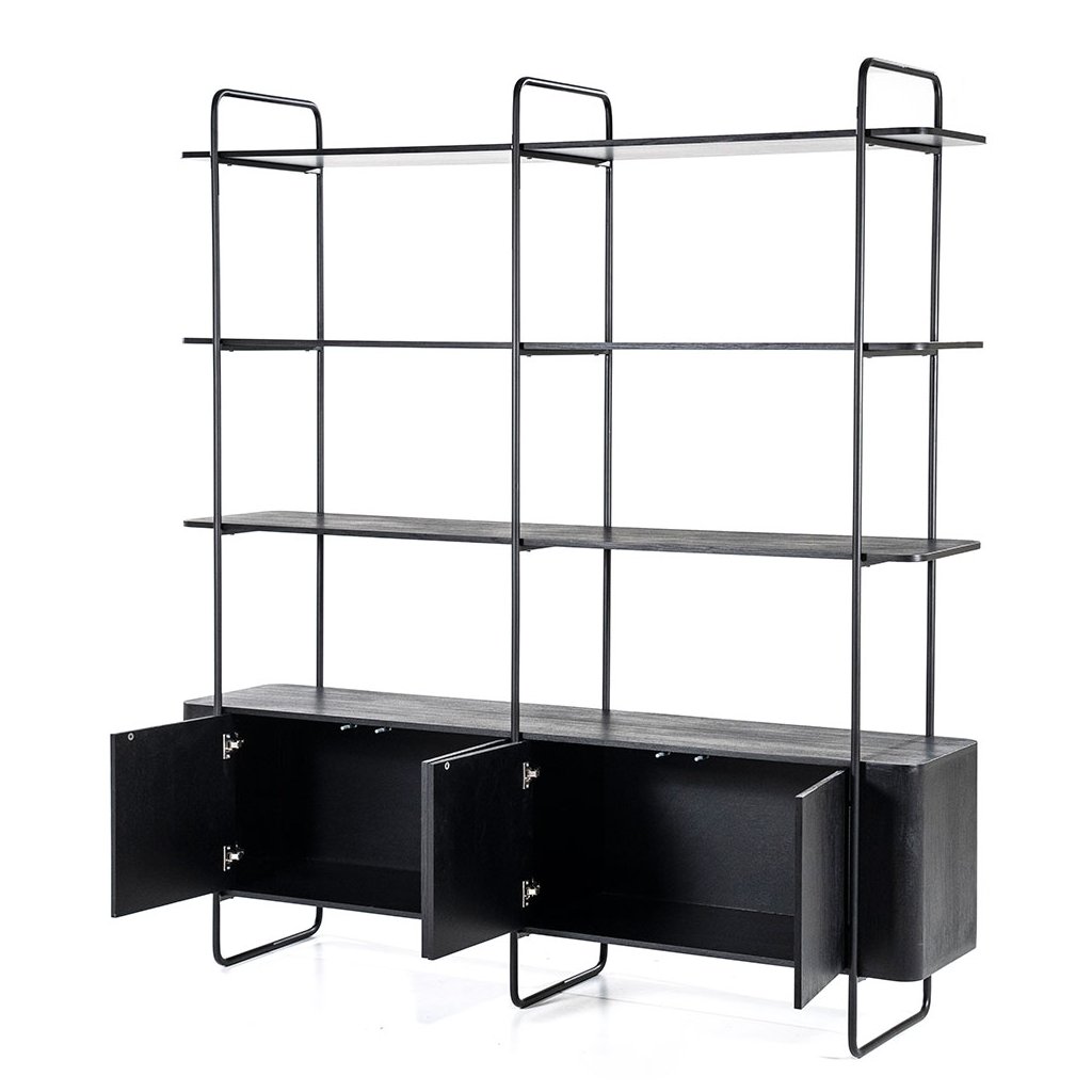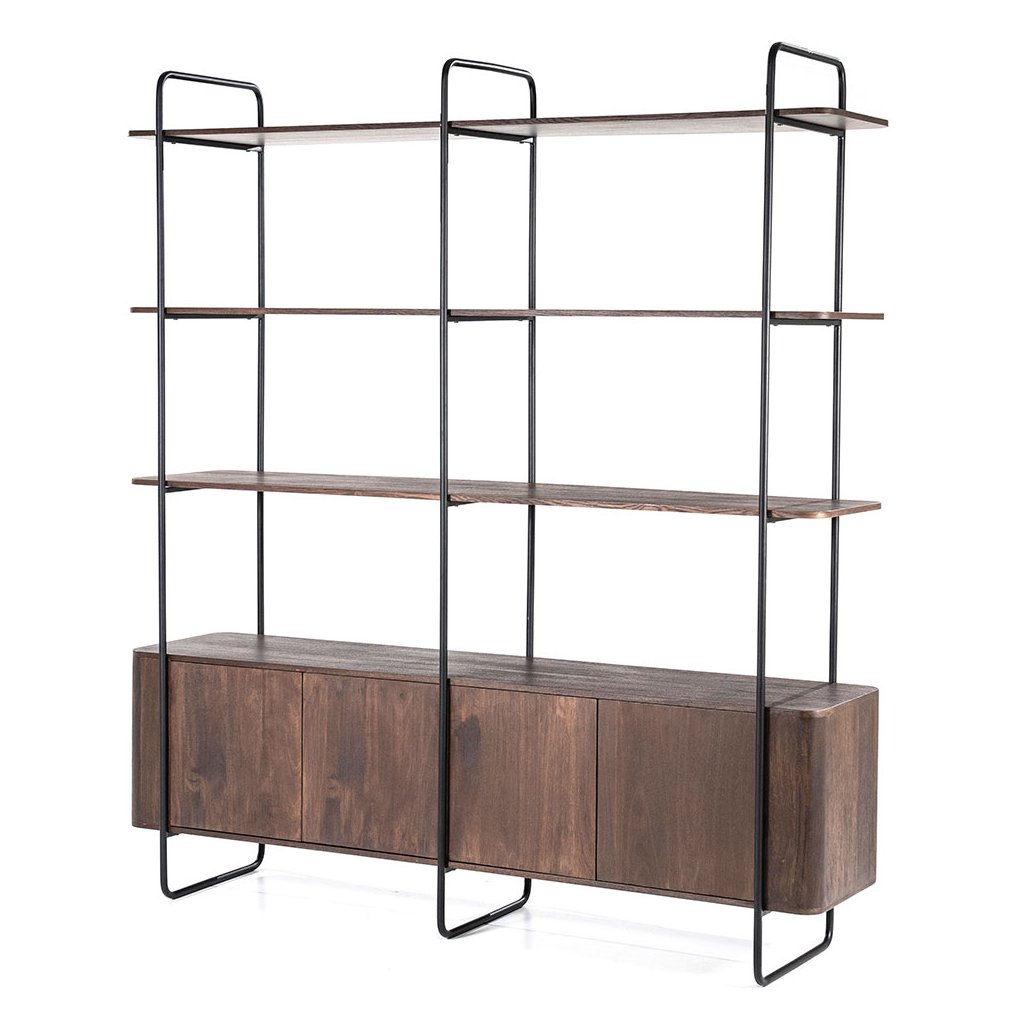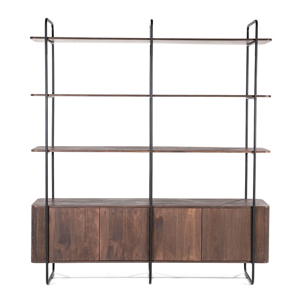 Industriální knihovna z masivního mangového dřeva v kombinaci s černými kovovými prvky. Vhodná téměř do každého interiéru.