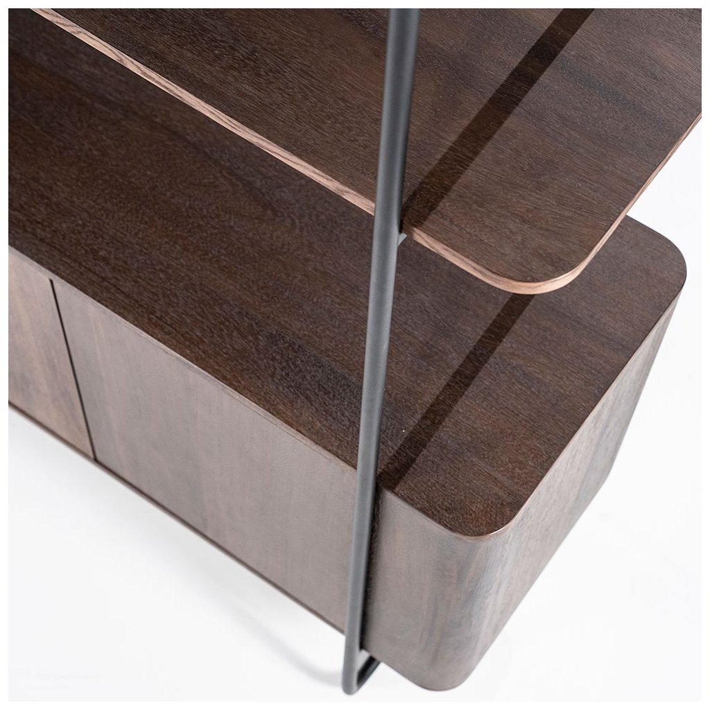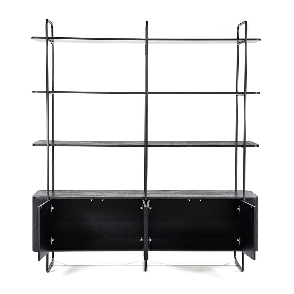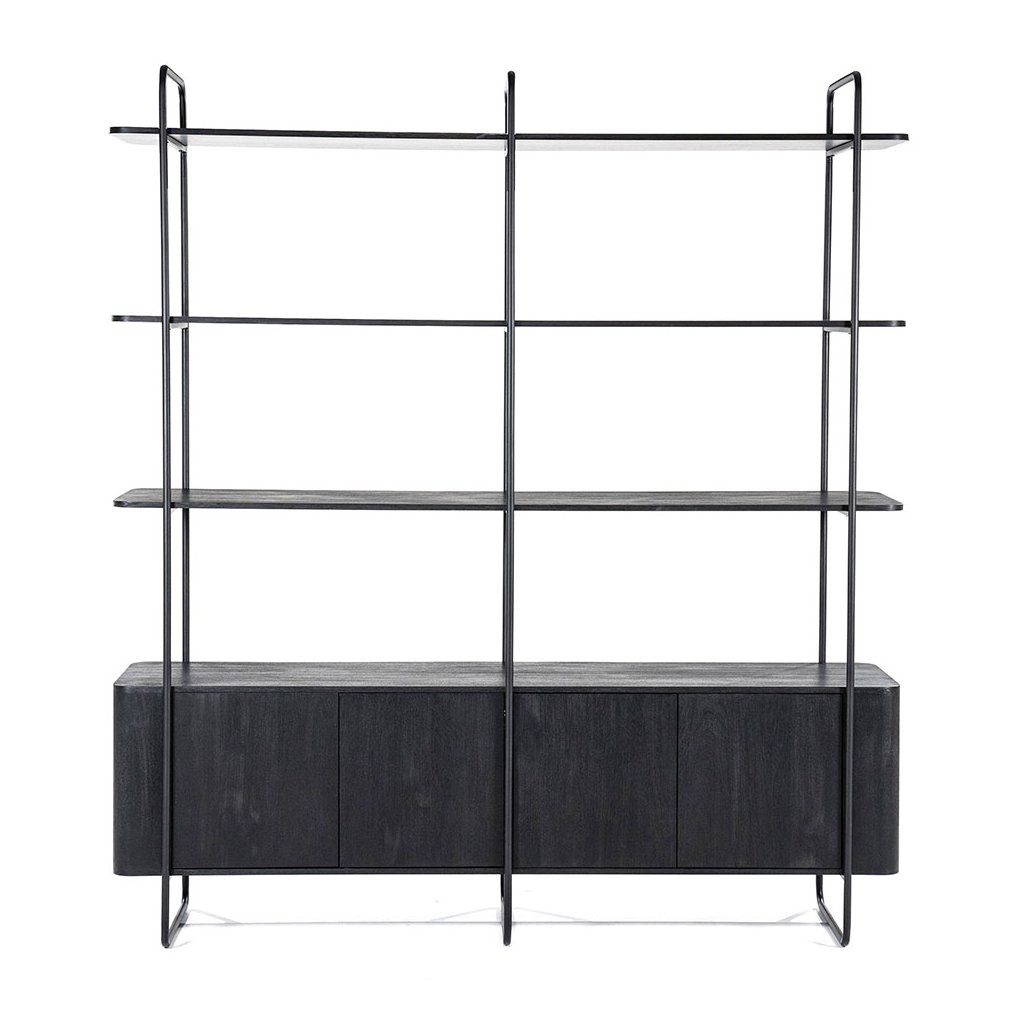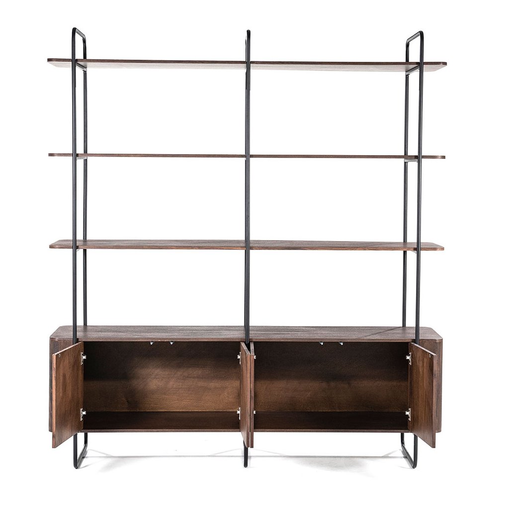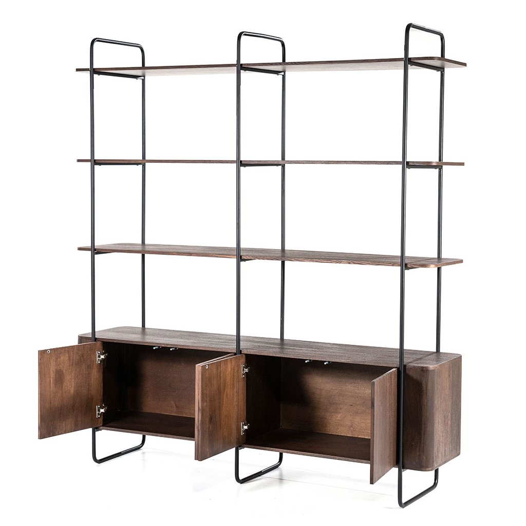 Industriální knihovna z masivního mangového dřeva v kombinaci s černými kovovými prvky. Vhodná téměř do každého interiéru.