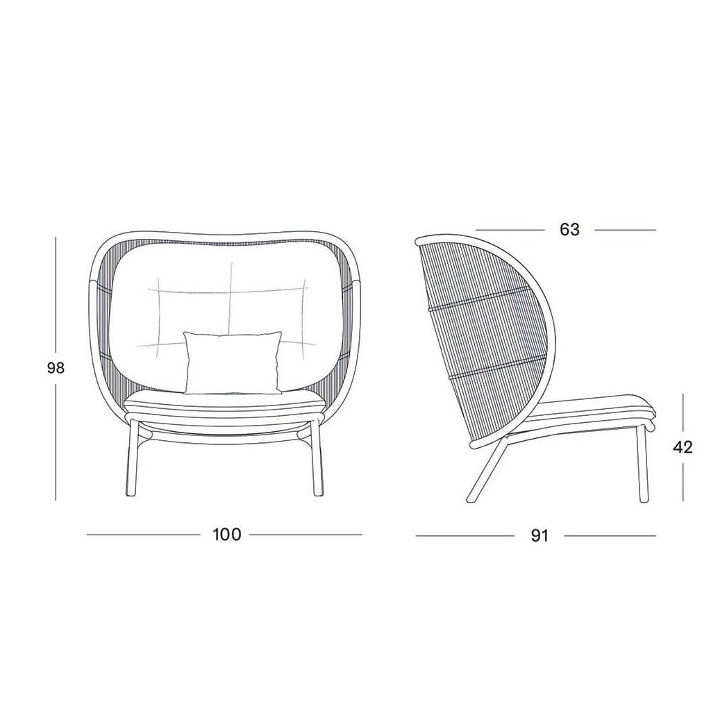 Kodo Cocoon vám umožní relaxovat venku v pohodlném křesle. Akrylové lano a zakřivení opěradla vyzařují teplo a příjemné prostředí.Cena křesla je uvedena bez čalounění a ozdobných polštářů.