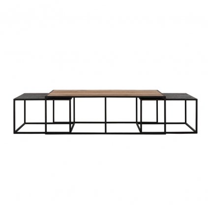 Sada 2 konferenčních stolků, které lze různě kombinovat nebo používat samostatně. Krásná kombinace recyklovaného teakového dřeva s kovovými a černými prvky.
