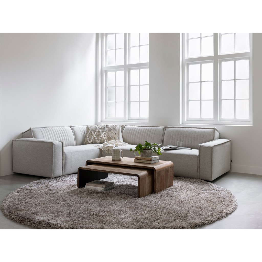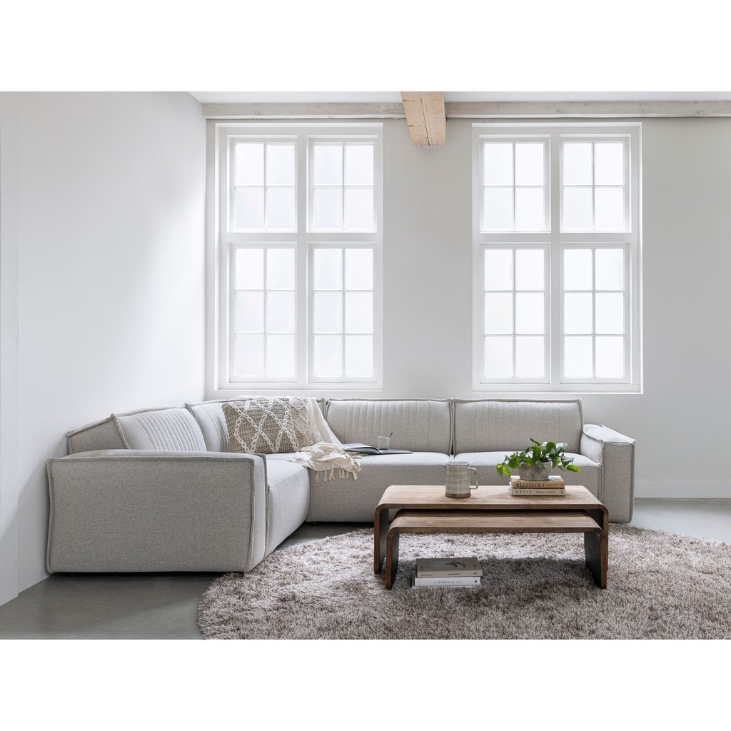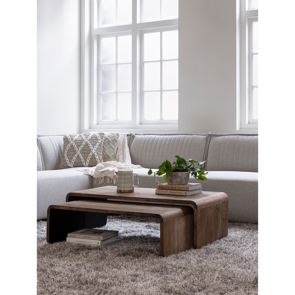 Sada 2 konferenčních stolků, které lze různě kombinovat nebo používat samostatně. Krásná kombinace recyklovaného teakového dřeva s kovovými a černými prvky.