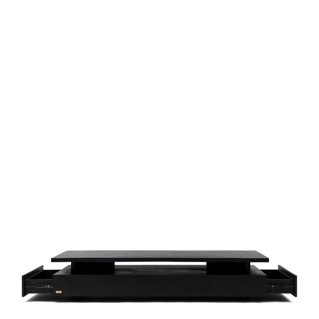 Konferenční stolek z kolekce 5th Avenue z masivního tmavého dubového dřeva. Horní deska jako by se trochu vznášela, protože upevnění je umístěno ve dvou bodech mezi oběma částmi. Chcete něco uložit mimo dohled? Pak využijte jednu ze dvou prostorných zásuvek v přední části.Doplňkové parametry
