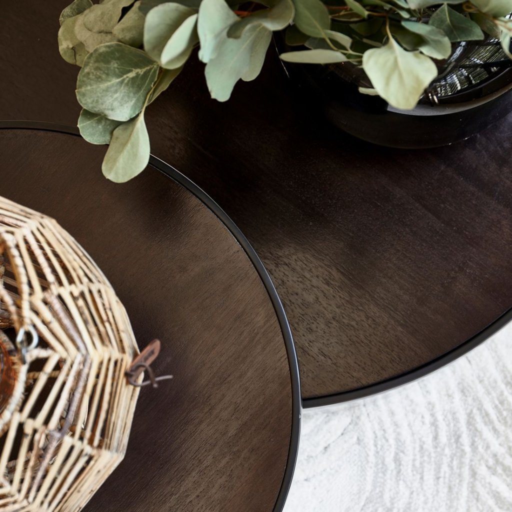 S konferenčním stolkem Hollywood Hills získáte do svého domova ne jeden, ale hned dva konferenční stolky. Tato sada se skládá ze dvou kulatých konferenčních stolků, přičemž spodní stolek má výklenek. Do něj můžete zasunout menší boční stolek. Ale samozřejmě nemusíte, protože tyto stolky s černým kovovým rámem a deskou z teplého šedého mangového dřeva budou vypadat skvěle i samostatně.Doplňkové parametry