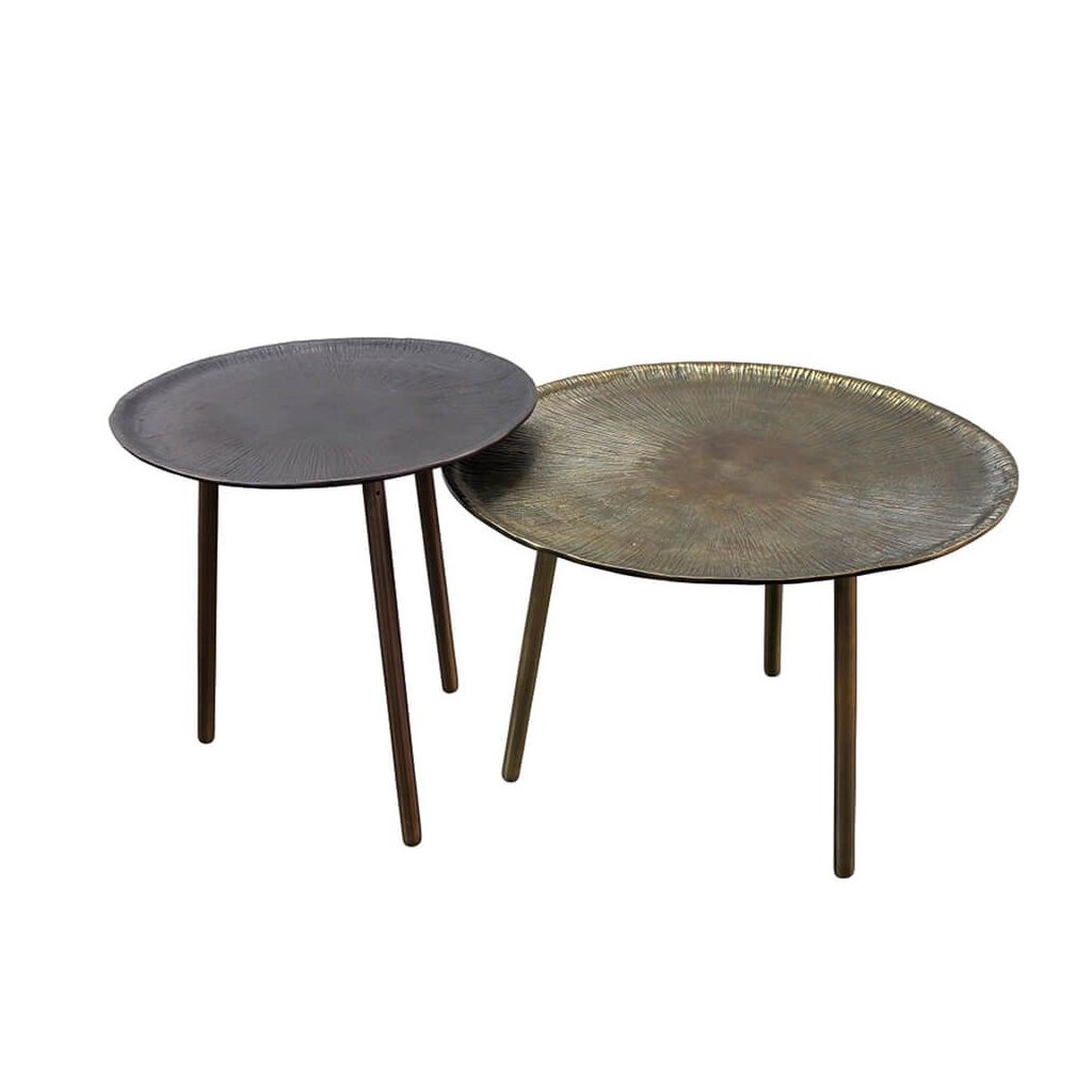 Sada dvou kovových stolků ve zlatém a šedém provedení