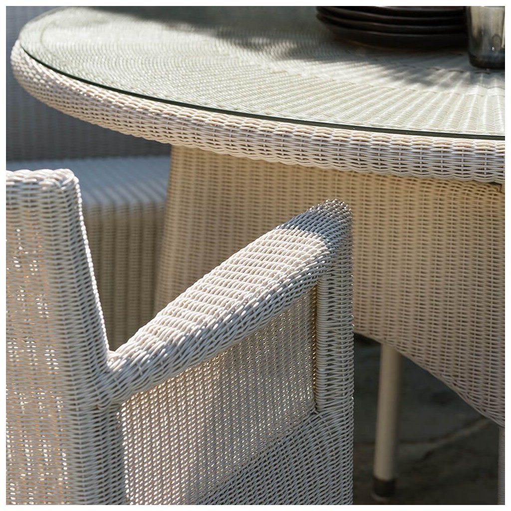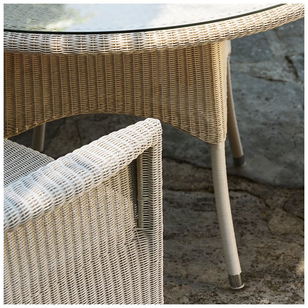 Jídelní židle Safi z proutěného polyethylenu na hliníkovém rámu v krásné barvě Old Lace. Možnost dokoupení sedáku v široké škále barev (14 barev vazeb)