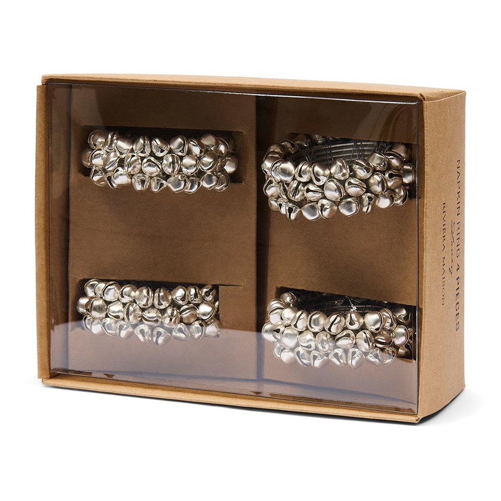 Tyto kroužky na ubrousky ve stříbrné barvě doplní každou prezentaci na stole. Jsou zdobené drobnými zvonečky a dodají vašemu stolu hravost a eleganci. . ideální pro sofistikovaný a slavnostní vzhled.Doplňkové parametry