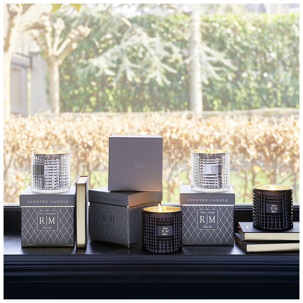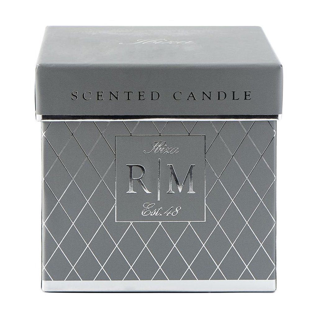 Když svíčka hoří vůní Ibizy, tento krásný ostrov není nikdy daleko. Erotická kombinace fíku, jasmínu, cedru a citronu zaručuje krásnou vůni v každém prostoru, kde je tato svíčka zapálena. Nápaditý vnější povrch je vyroben ze skla, které je pro doplnění fasetováno krásným zlatým logem RM. Tato krásná svíčka hoří 44-48 hodin.