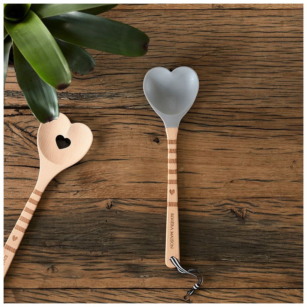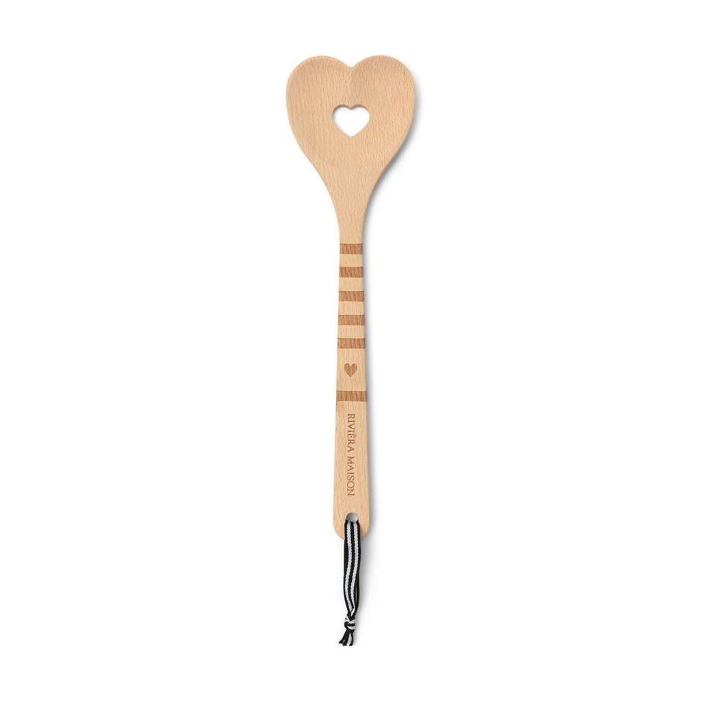 Ponořte se do kuchyně s tímto praktickým nástrojem: přírodní kuchyňskou lžící With Love. Tento kuchyňský doplněk je vyroben výhradně ze dřeva, s vkusnými vypalovanými pruhy a logem RM.