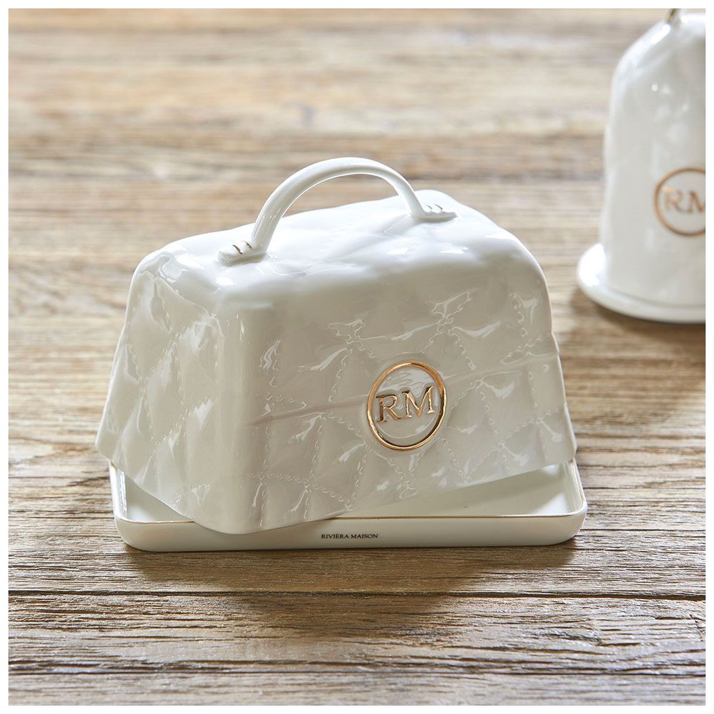 S touto neodolatelnou máslenkou RM Luxury Bag přenesete do svého domova kouzlo skutečně elegantního francouzského bistra. Luxusní prošívaný vzhled porcelánové tašky dodává misce na máslo módní vzhled, zatímco přední kroužek s nápisem RM dotváří její vzhled.