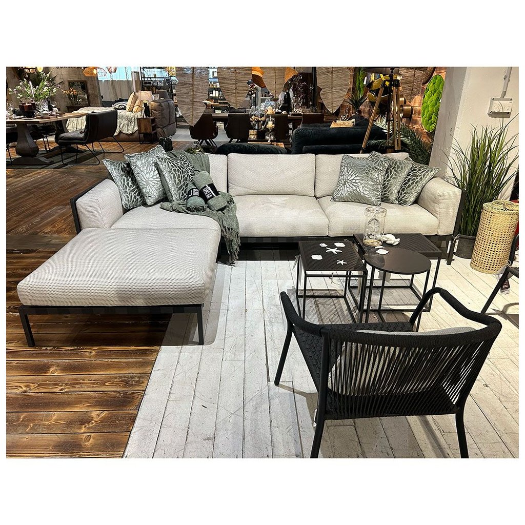 Je to naše nejoblíbenější a nejprodávanější sedačka. Zvláštní pozornost věnujeme venkovním polštářům, které mohou zůstat venku po celou sezónu. Vzduchová výplň je potažena voděodolným laminovaným polypropylenovým potahem, který je odolný vůči vodě. Všechny švy jsou navíc opatřeny vnitřním potahem, který zabraňuje pronikání vody. Hliníkový rám pohovky je opatřen pískováním s mimořádně odolným lakem pro zvýšení odolnosti proti poškrábání.