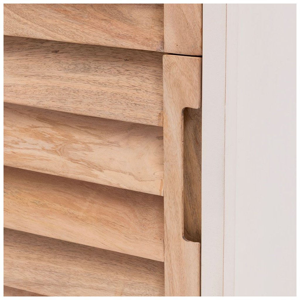 Řada Pacifica nyní zahrnuje také nábytek do ložnice, například tento noční stolek. Tato skříňka je vyrobena z mangového dřeva v přírodní barvě s bílým povrchem. Čelo stolku se pyšní vzhledem okenice a obsahuje dvířka a skrytou zásuvku. Je k dispozici pro levou i pravou stranu.Doplňkové parametry