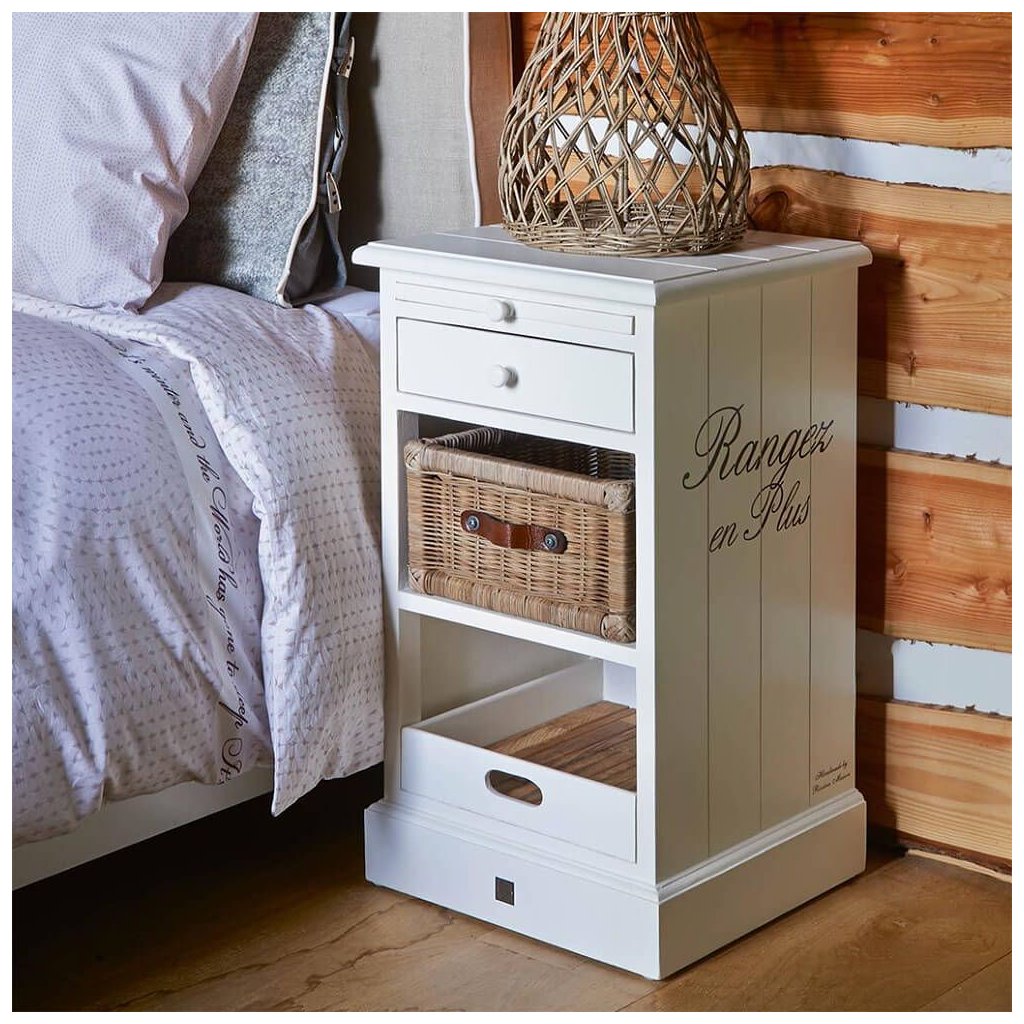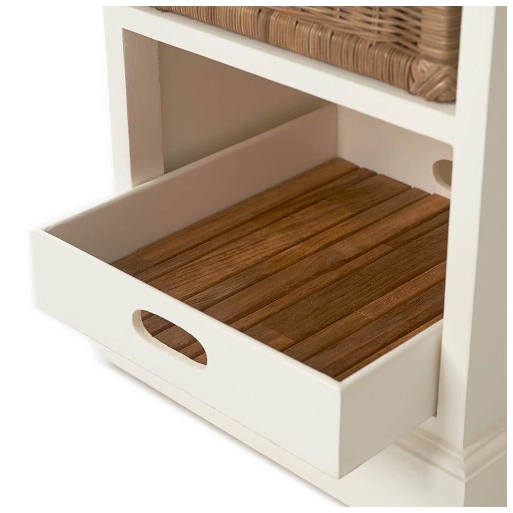 Tento noční stolek má dvě dřevěné zásuvky, čtyři ratanové zásuvky a krásný integrovaný dřevěný podnos.Doplňkové parametry