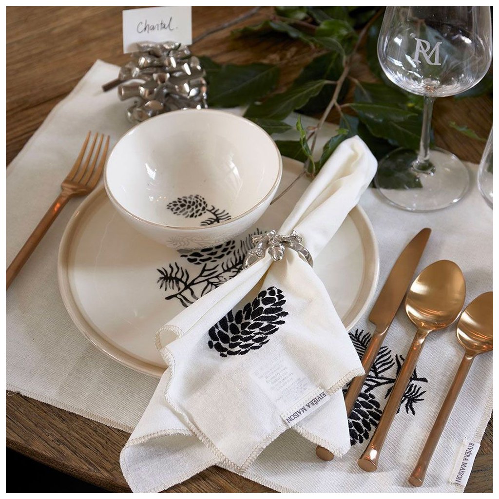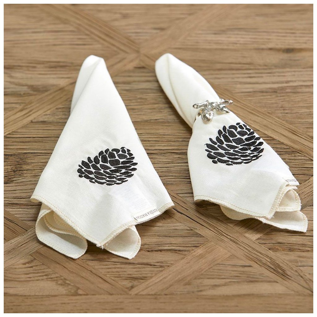 Oblečte svůj stůl do příjemné a útulné atmosféry. Doplňte ho krásně vyšívanými ubrousky RM Dusty Pine Cone. Sada 2 kusů obsahuje vyšívanou borovicovou šišku. Perfektní doplněk na váš stůl v moderním stylu. Dopřejte svým hostům příjemný pocit a užijte si společně nezapomenutelný večer.