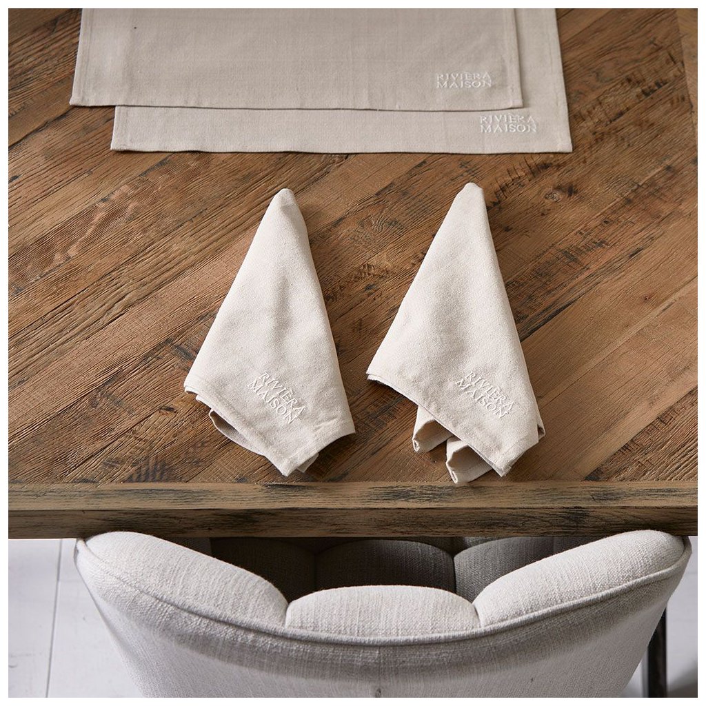 Ti, kteří rádi prostírají stylově, si vybírají látkové ubrousky, například lněné ubrousky RM Classic. Tato sada se skládá ze dvou velkorysých bavlněných ubrousků v krásné světle hnědé barvě. Ubrousky jsou opatřeny výšivkou s logem Riviera Maison. K dispozici jsou v různých provedeních.