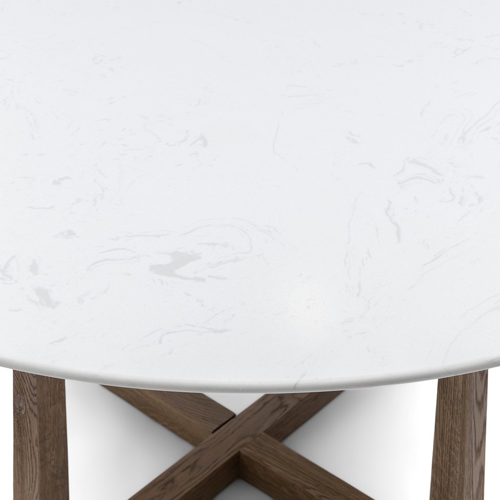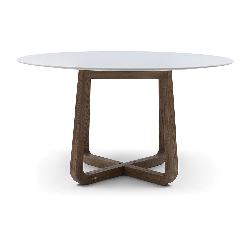 Tento jídelní stůl je mistrovským dílem elegance a funkčnosti. Kulatá mramorová deska dodává jídelnímu stolu luxusní nádech, zatímco tři dubové nohy působí moderně a nápaditě. Díky dostatku místa pro pět osob nabízí stůl praktické i estetické výhody. Jemné logo Riviera Maison na noze podtrhuje sofistikovanost designu. Každý stůl je díky přírodnímu kameni jedinečný a vytvoří ve vašem interiéru jedinečný kousek. Ideální volba pro elegantní a moderní nádech vaší jídelny.Doplňkové parametry