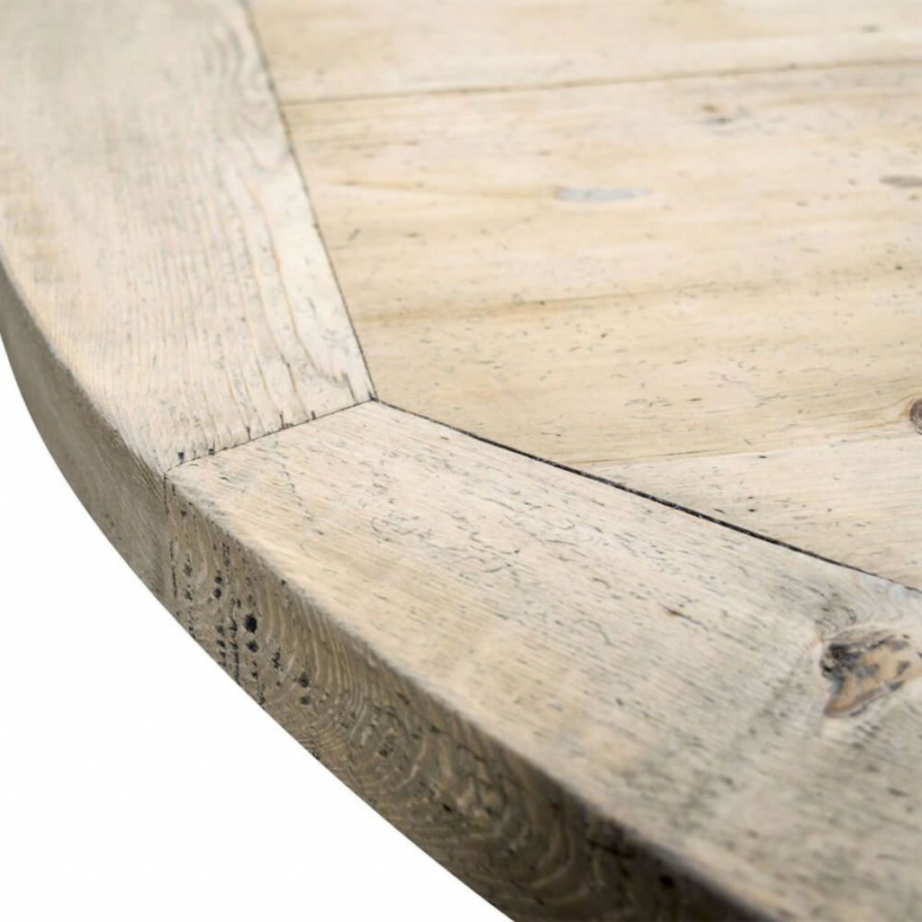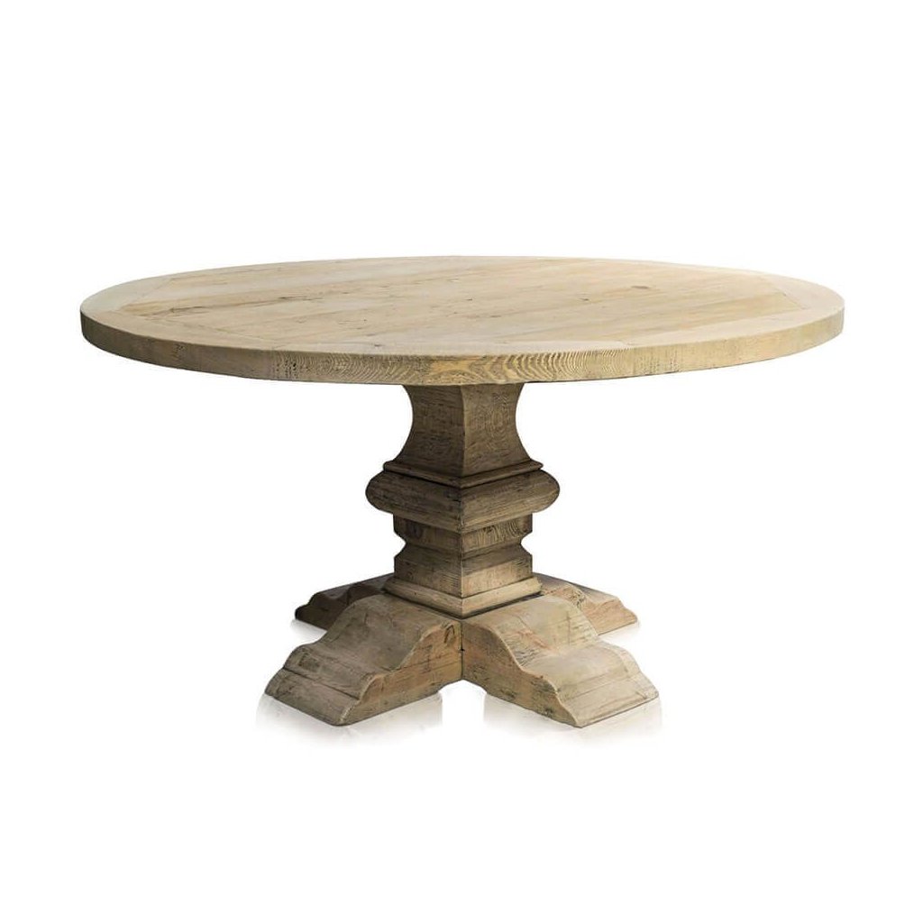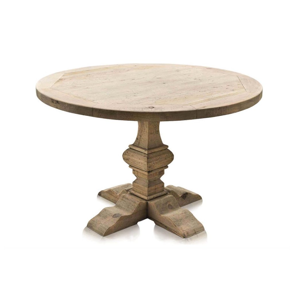 Kulatý jídelní stůl ze starého recyklovaného smrkového dřeva. Horní část 5 cm. Krásná ruční práce se odráží v kvalitních materiálech a krásně vyřezávané noze stolu.