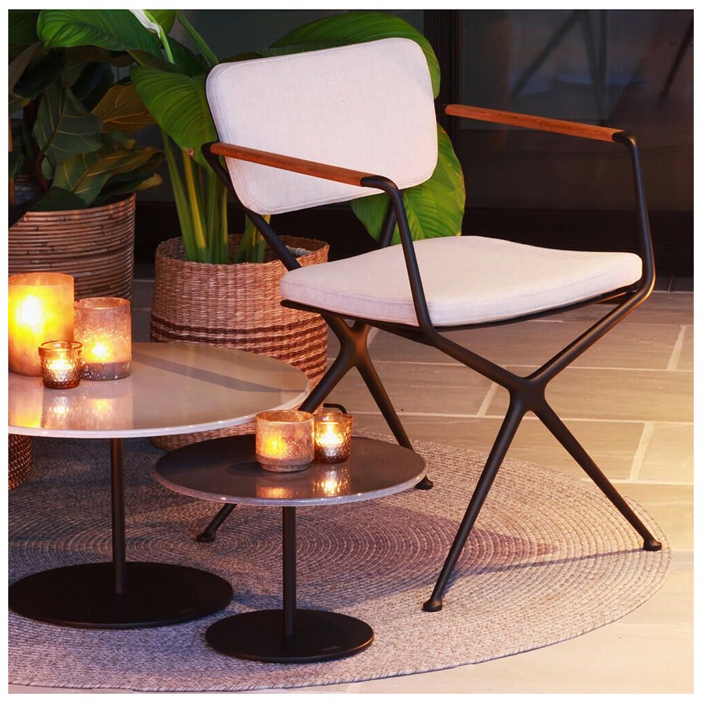 Syntetické ručně tkané venkovní podlahové koberce jsou vyrobeny z tkaniny Textilene® odolné proti povětrnostním vlivům (polyester potažený PVC) od společnosti Twitchell, USA a z příze UVOL® Olefin odolné proti povětrnostním vlivům. UVOL® Olefin dodává kobercům bohatý textilní vzhled a měkký omak. Textilene® dodává koberci na podlaze pevnost a stabilitu.4 barevné verze.