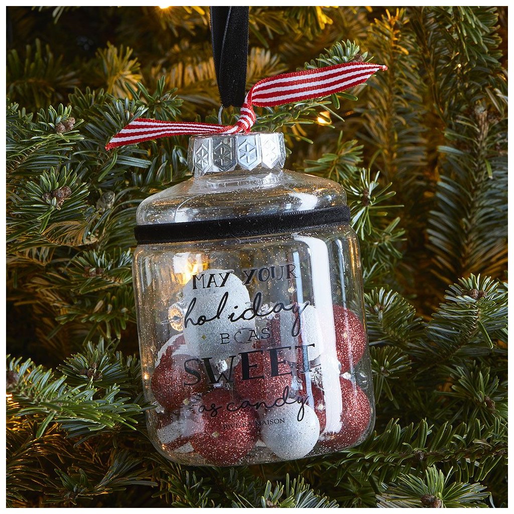 Vánoční ozdoba Baulbe Jar je lahůdkou pro váš vánoční stromek. Tato ozdoba má tvar sklenice na cukroví a je naplněna malými červenými a bílými cukrovými žárovičkami. Ozdoba je vyrobena z foukaného skla a je zakončena ozdobnou červenobílou stuhou. Lze ji zavěsit pomocí černé sametové stuhy.Doplňkové parametry