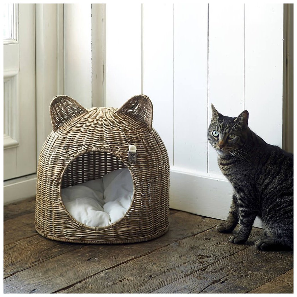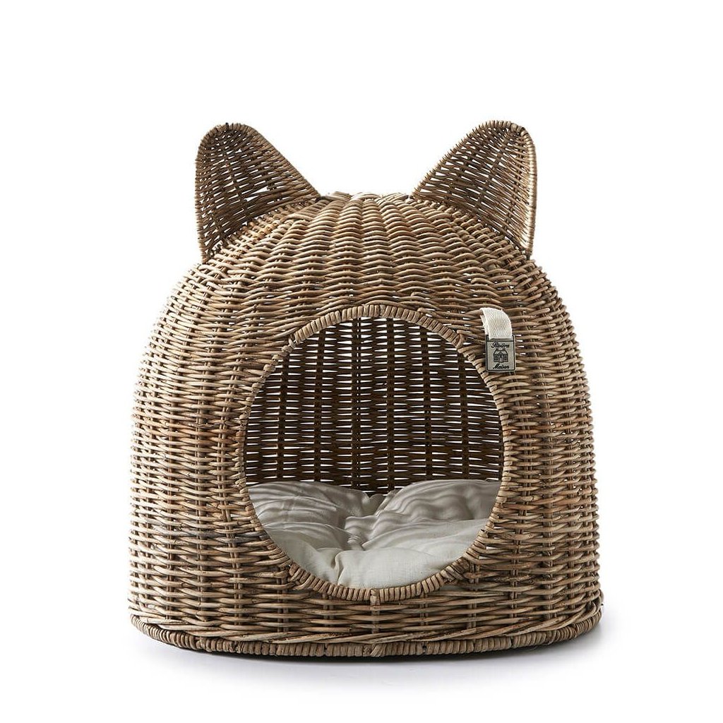 Lovely Kitten Cat House je roztomilý pelíšek pro kočky pro vašeho čtyřnohého přítele. Košík je ručně vyrobený z rákosu, nepřehlédnutelný, s oušky dvou koček.