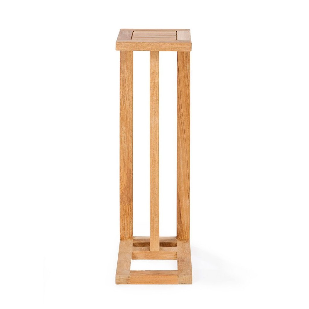 Ať už chcete mít při odpočinku na pufu na dosah svůj oblíbený nápoj, knihu nebo svačinu, s bočním stolkem z teakového dřeva bude váš puf ještě funkčnější a stylovější!Stůl je ručně vyroben z kvalitního teakového dřeva, materiálu známého svou přirozenou krásou, trvanlivostí a odolností vůči povětrnostním vlivům. Jeho design je nadčasový a dokonale se hodí k sadě Silky nebo Dotty.