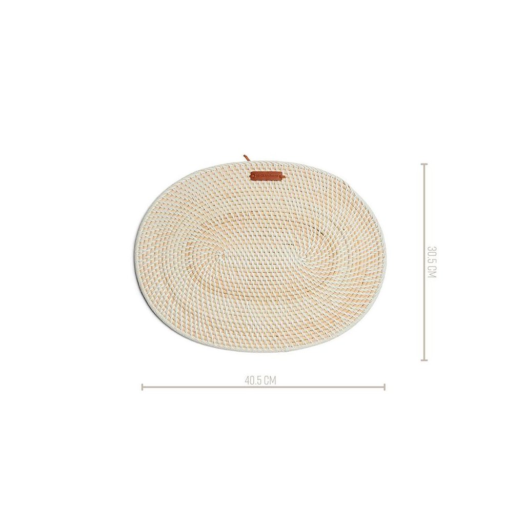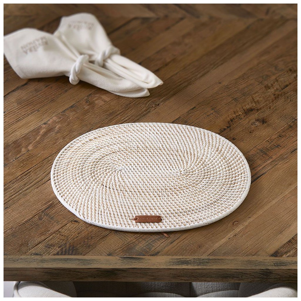 S tímto prostíráním ze série Crystal Bay získáte čerstvě prostřený stůl. Prostírání má oválný tvar se spirálovitě zvlněnými pruhy. Pruhy jsou vyrobeny z batátové třtiny, která je jádrem ratanového stonku, a proto má světlejší hnědou/přírodní barvu. Podložka je zakončena bílými pruhy a koženým štítkem.Doplňkové parametry