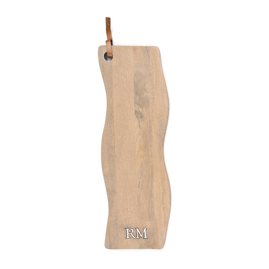 Toto podlouhlé dřevěné prkénko má zvlněné hrany a krásnou kresbu dřeva. Dřevo je zdobeno vyrytým stříbrným logem RM a koženou stuhou. Při každém použití prkénka můžete ocenit pozornost věnovanou detailům a řemeslnému zpracování každého aspektu designu.Doplňkové parametry