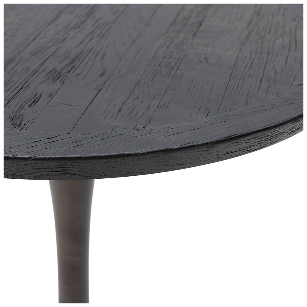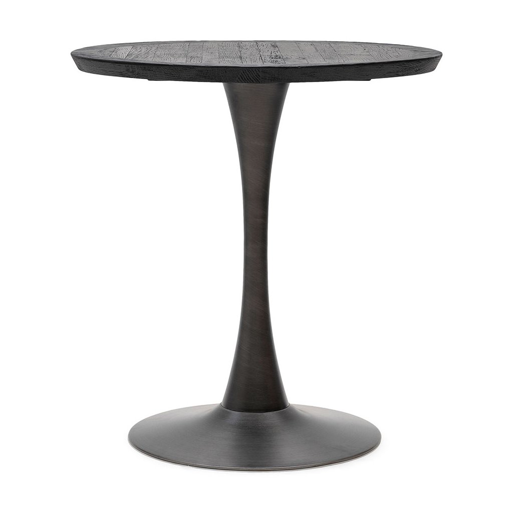 Kulatý stůl Bistro z naší kolekce Sherwood je skvělým doplňkem každé místnosti. Tento stůl má moderní a robustní vzhled, je vyroben z recyklovaného dubu s elegantní černou povrchovou úpravou a spočívá na pevné kovové noze. S průměrem 70 cm je tento stůl kompaktní a stylovou volbou do různých interiérů.